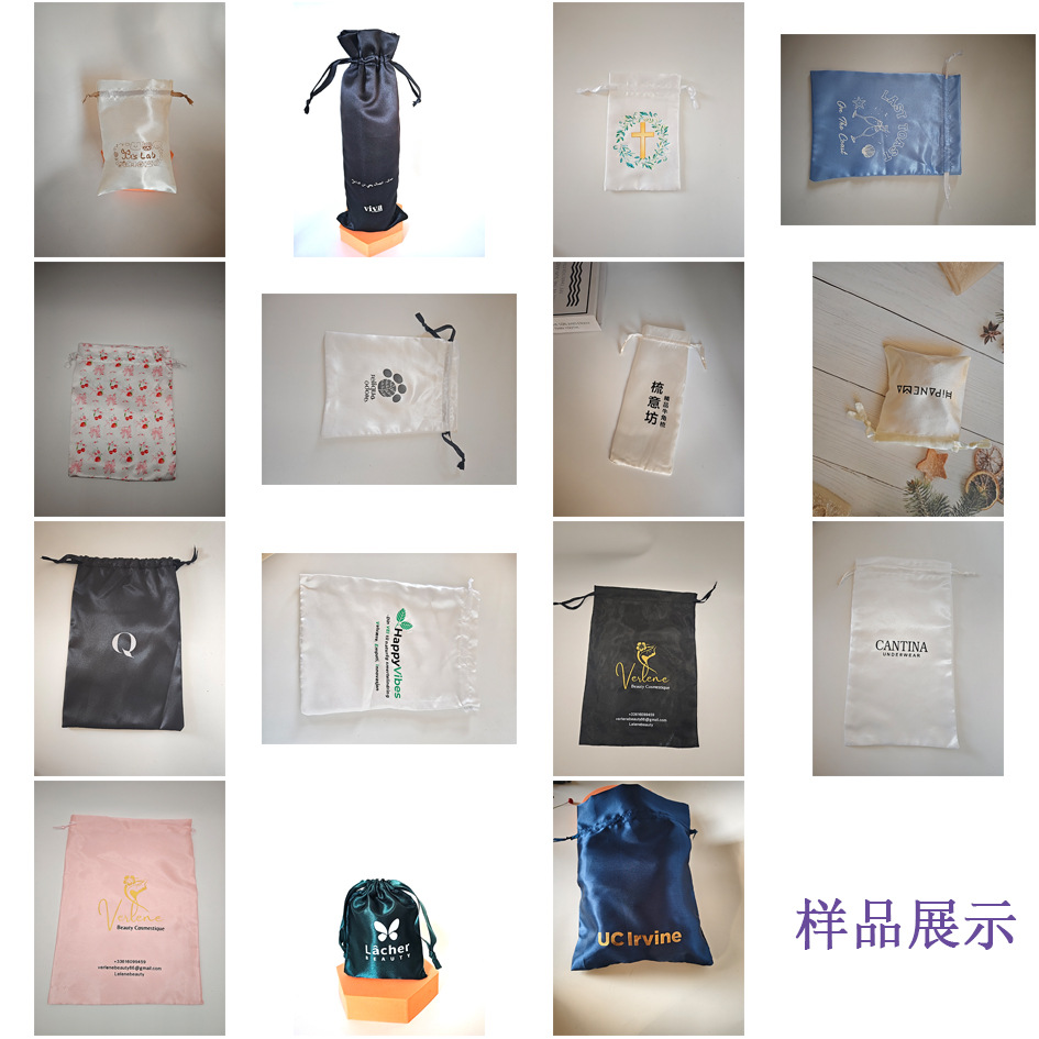 В наличии оптом атласные мешочки на завязках, пыленепроницаемые мешочки для хранения париков и нижнего белья из гладкого шелка, утолщенный атлас, имитирующий шелк.