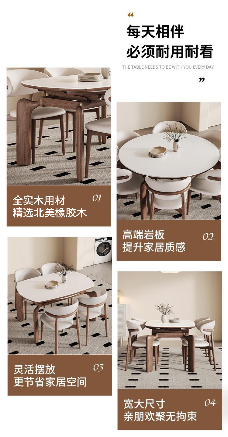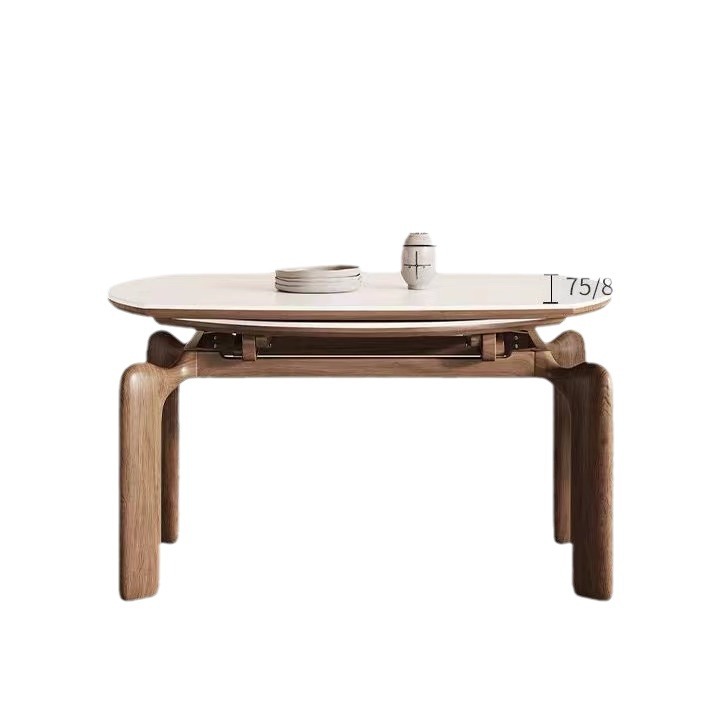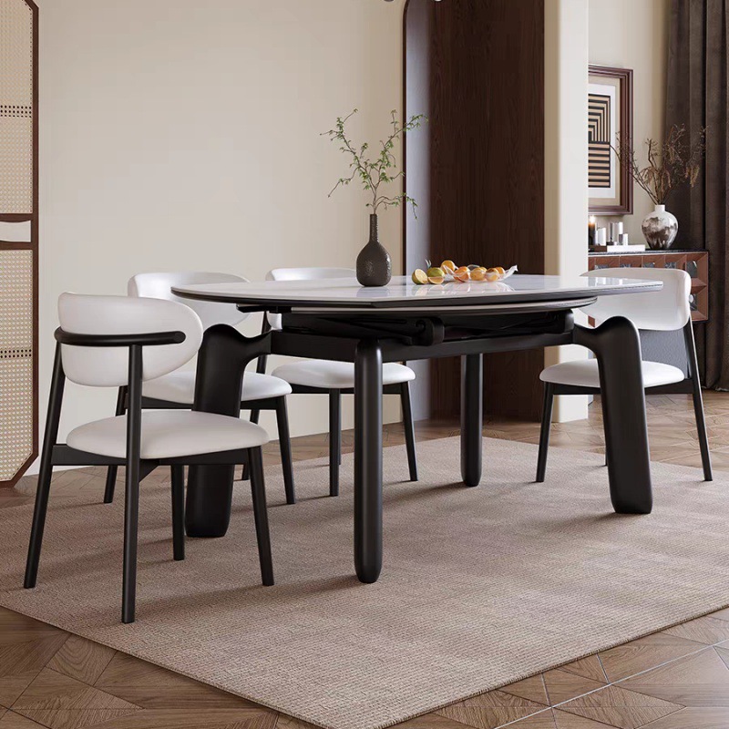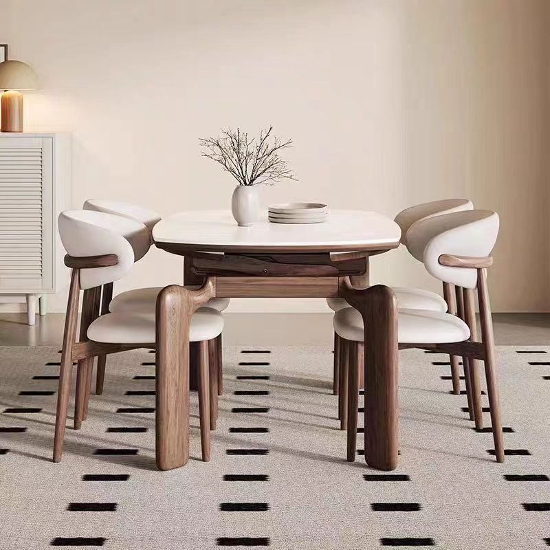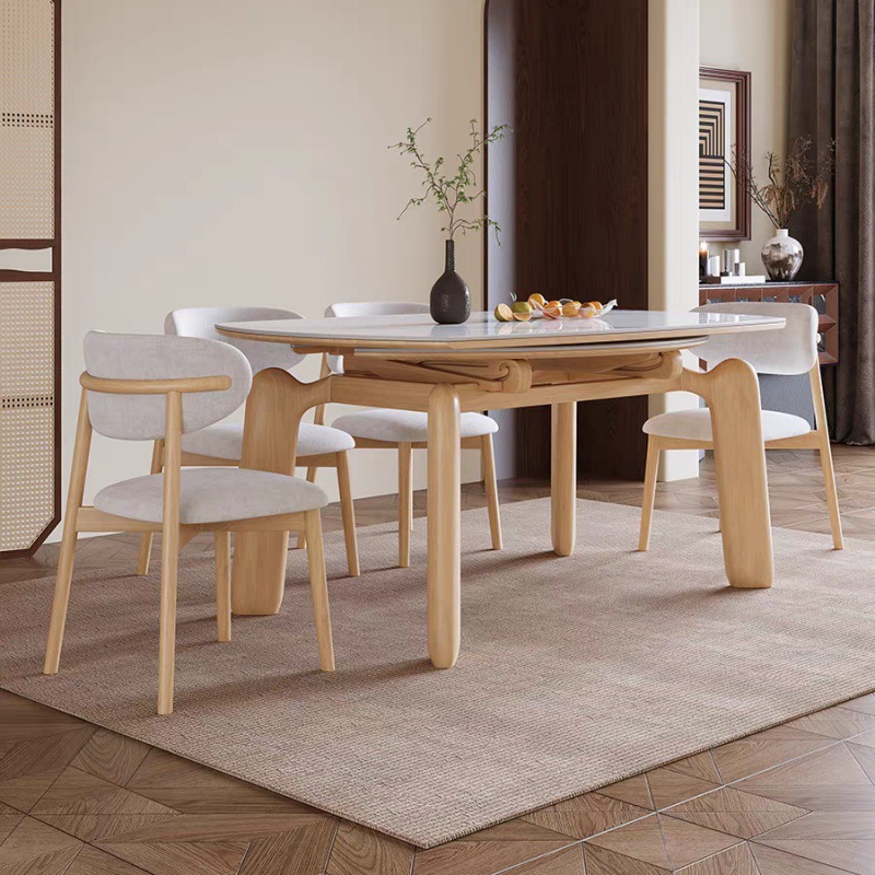 Американский складной обеденный стол и стулья из массива дерева, раскладной от квадратной к круглой формы, новая винтажная французская коллекция 2025 года в стиле ваби-саби середины века.