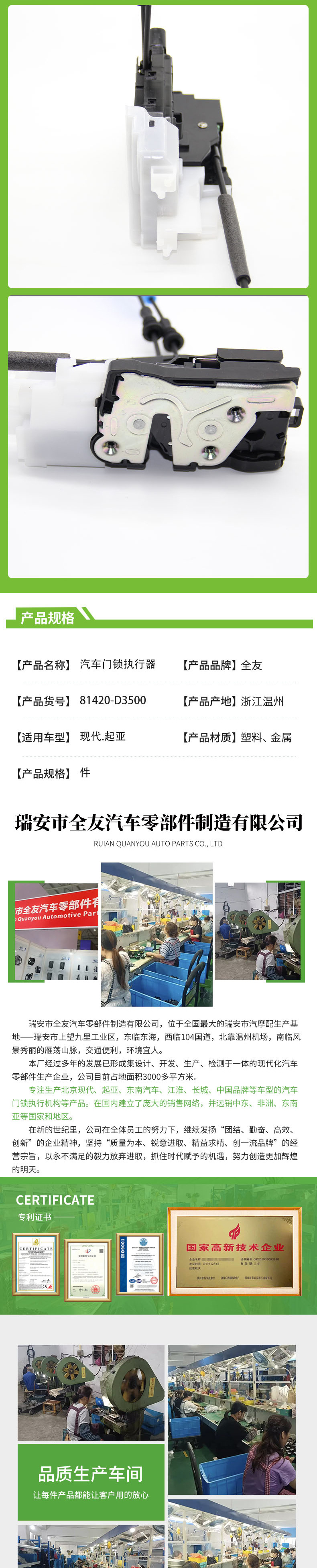 81420D3000 подходит для нового актуатора замка двери автомобиля Tucson 81420-D3000.