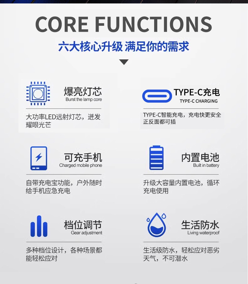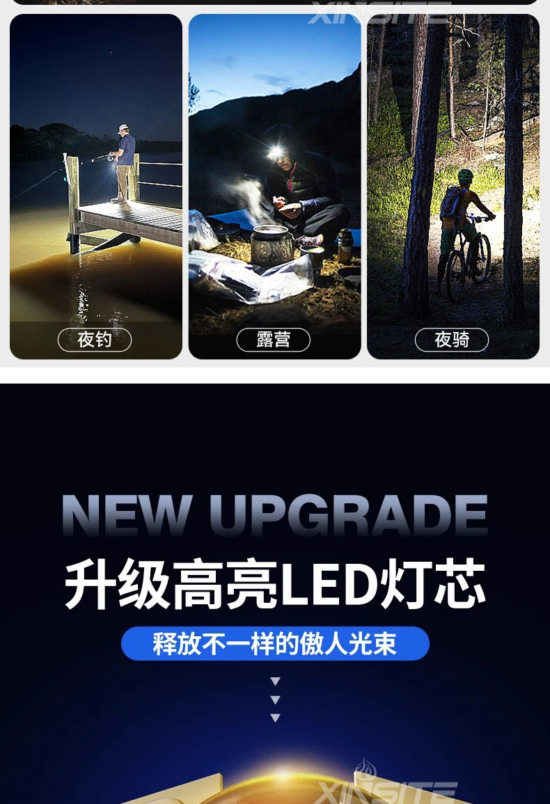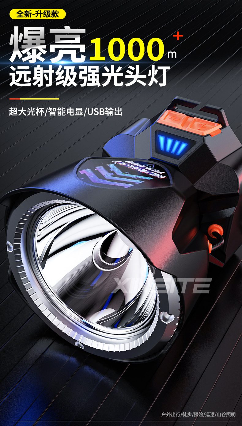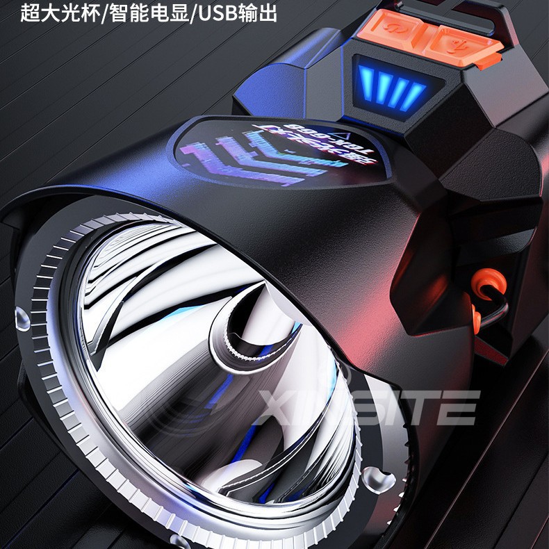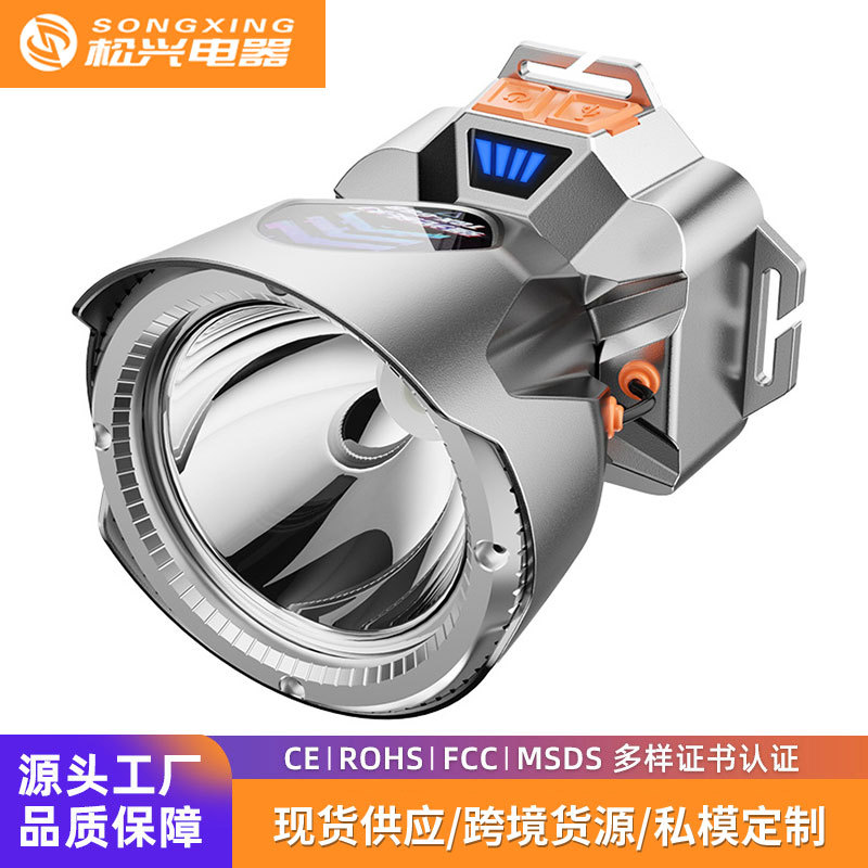 Трансграничный популярный многофункциональный налобный фонарь с сильным светом, длительным сроком службы батареи, электронным дисплеем, перезаряжаемой шахтерской лампой, уличный аварийный водонепроницаемый налобный фонарь для рыбалки.