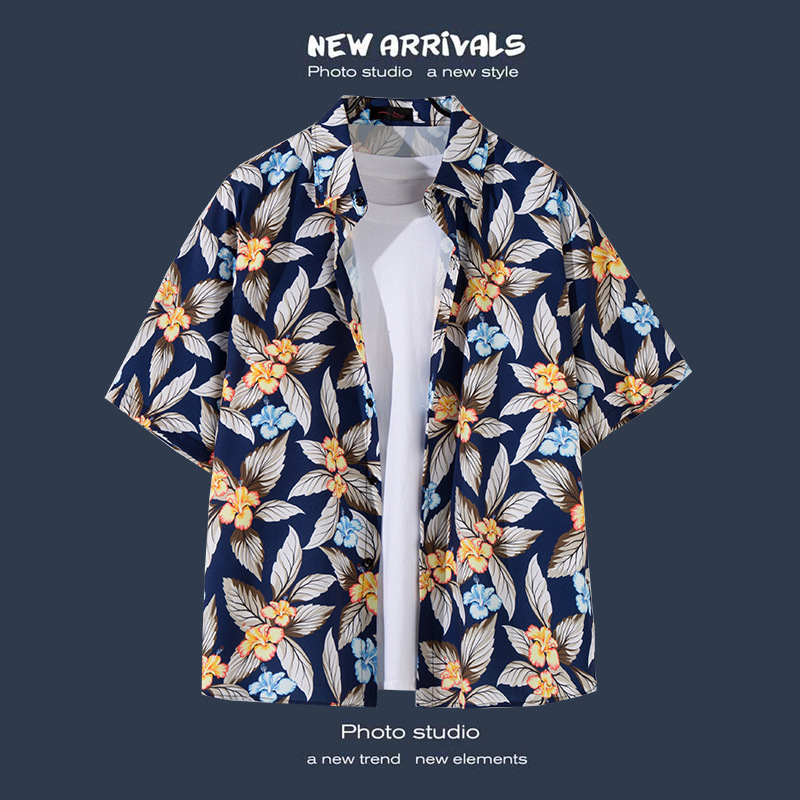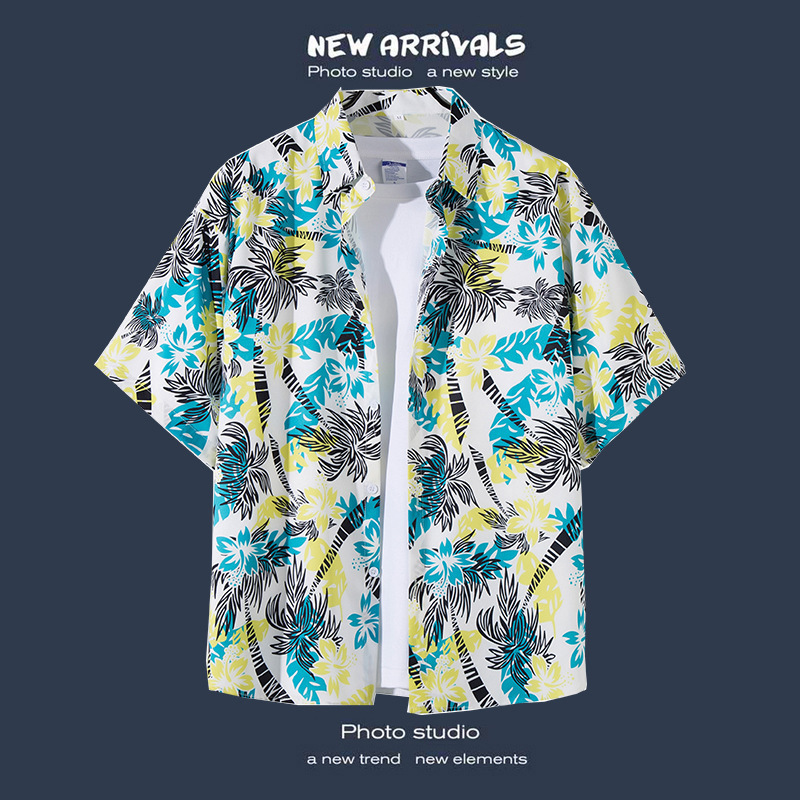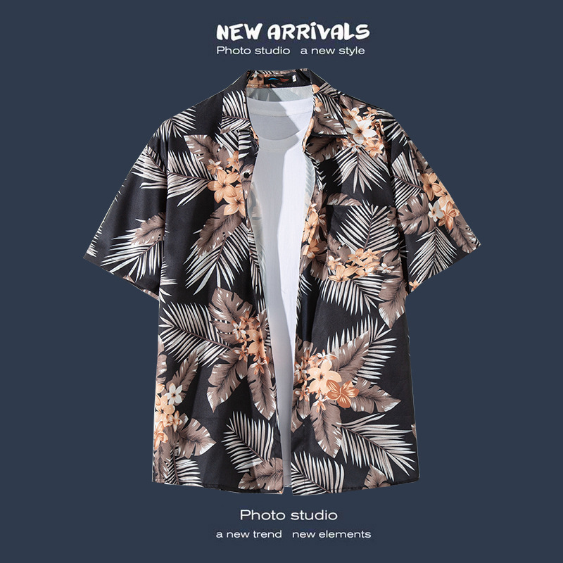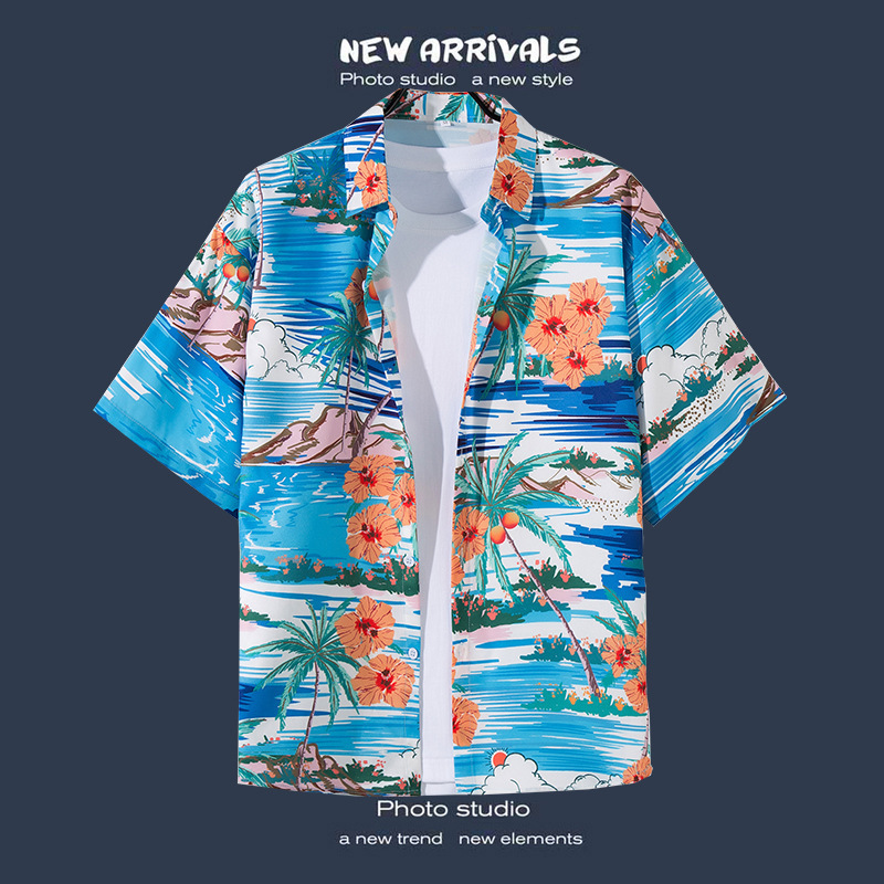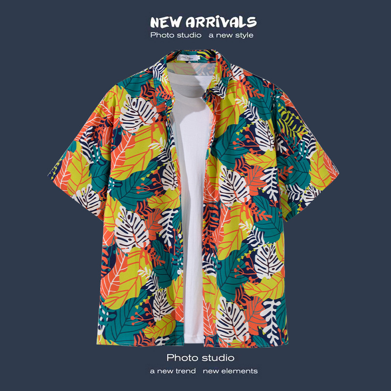 Пляжная рубашка для отдыха на море, мужская рубашка с короткими рукавами, красивый гавайский ретро, свободная пляжная рубашка