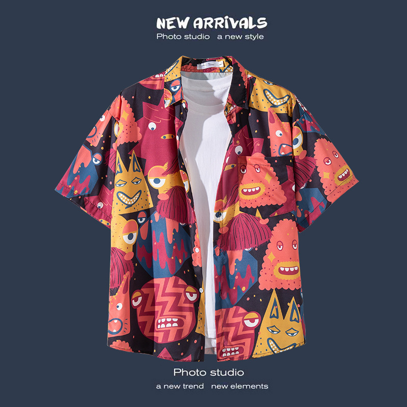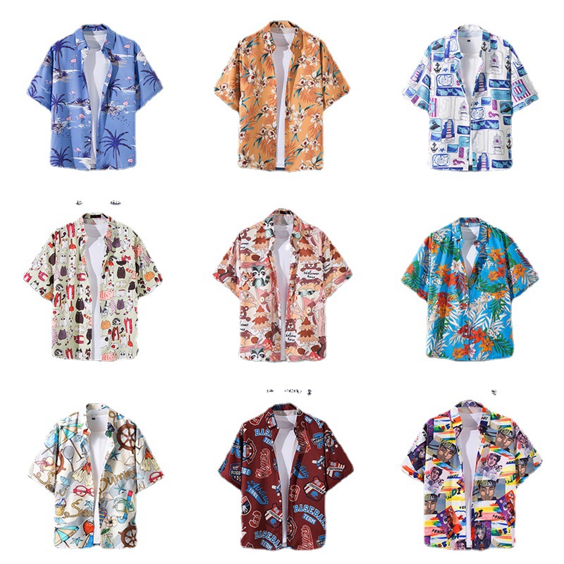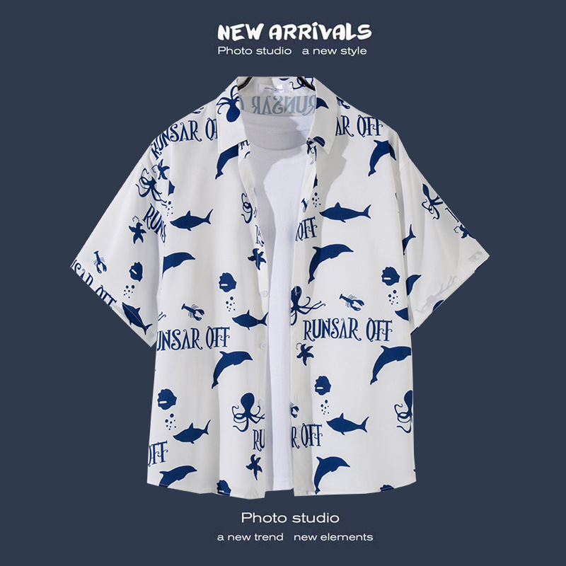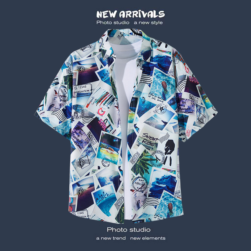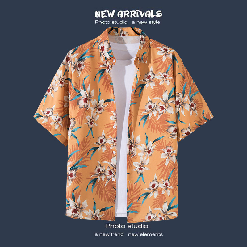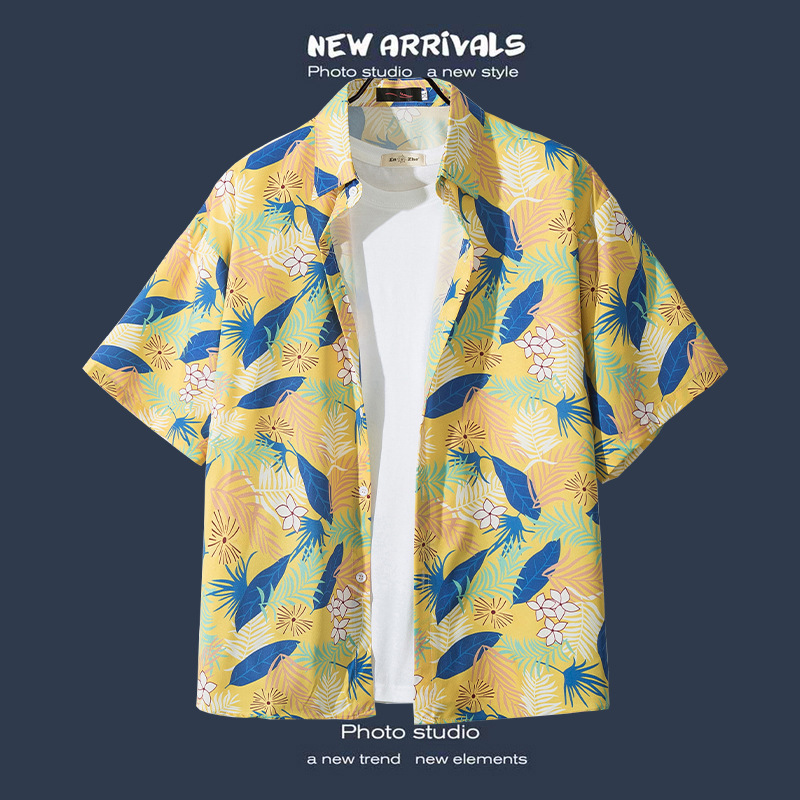Пляжная рубашка для отдыха на море, мужская рубашка с короткими рукавами, красивый гавайский ретро, свободная пляжная рубашка