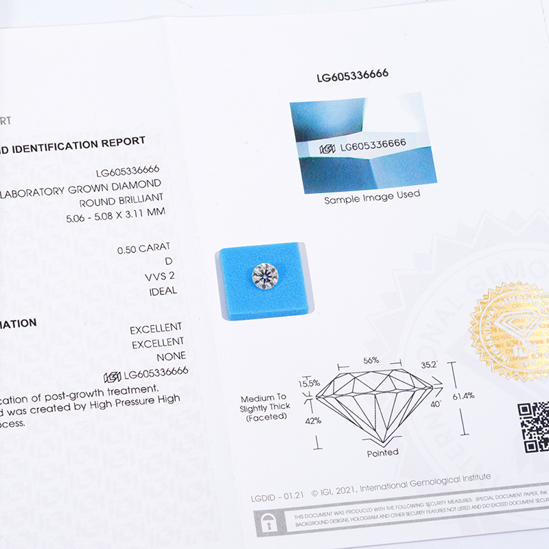 Оптовые продажи сертифицированных IGI лабораторно выращенных бриллиантов из Хэнаня, синтетические лабораторно-изготовленные бриллианты, круглая огранка, цвет D, чистота VVS.