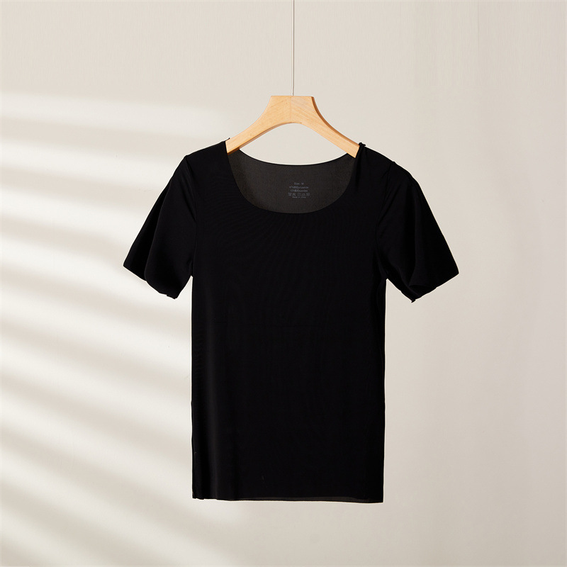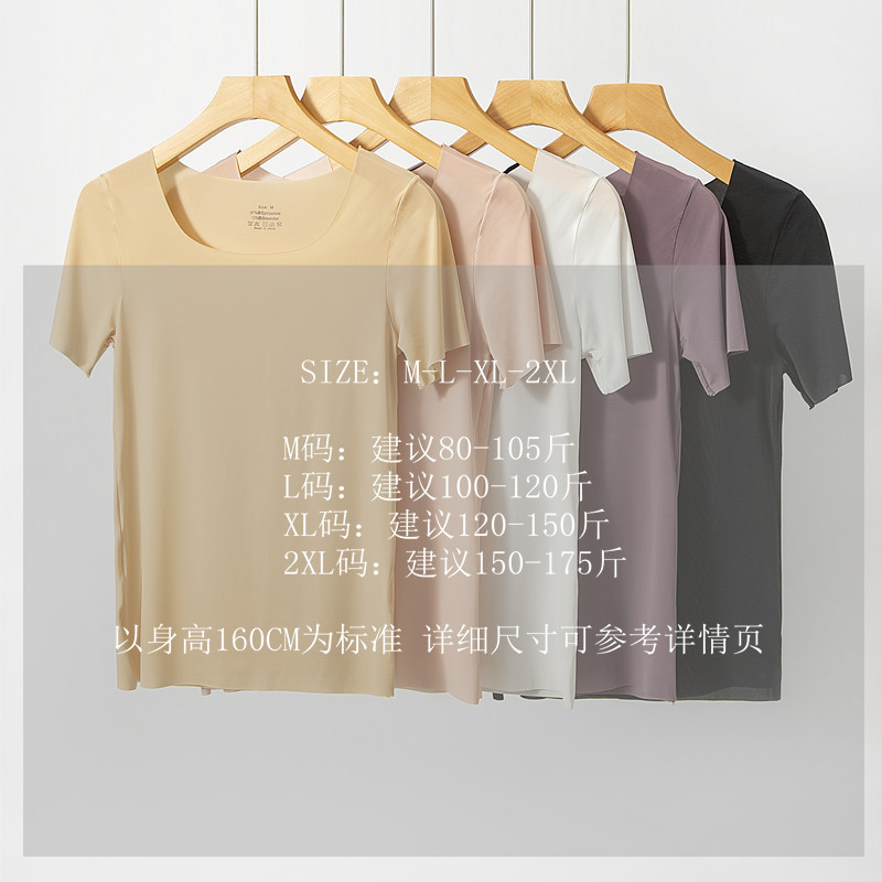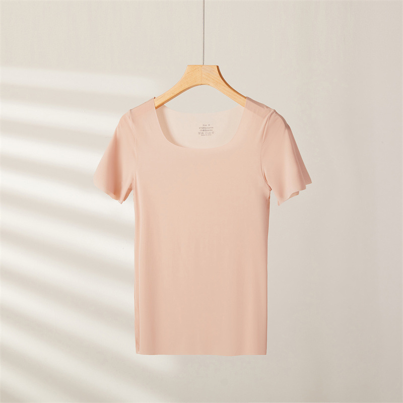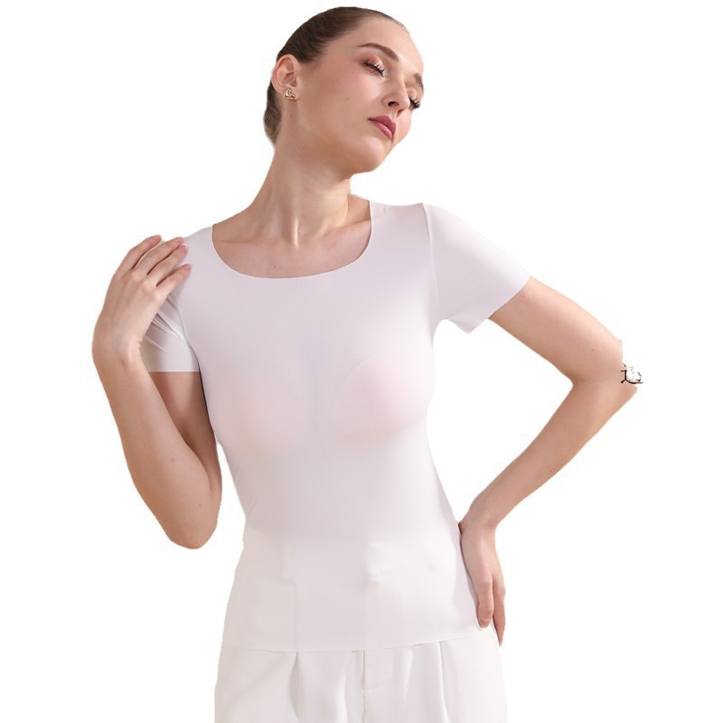 DX5662 Невидимый ледяной шелк с короткими рукавами женский летний бесшовный телесный цвет нижний топ белая рубашка анти-прозрачная футболка с низким воротником