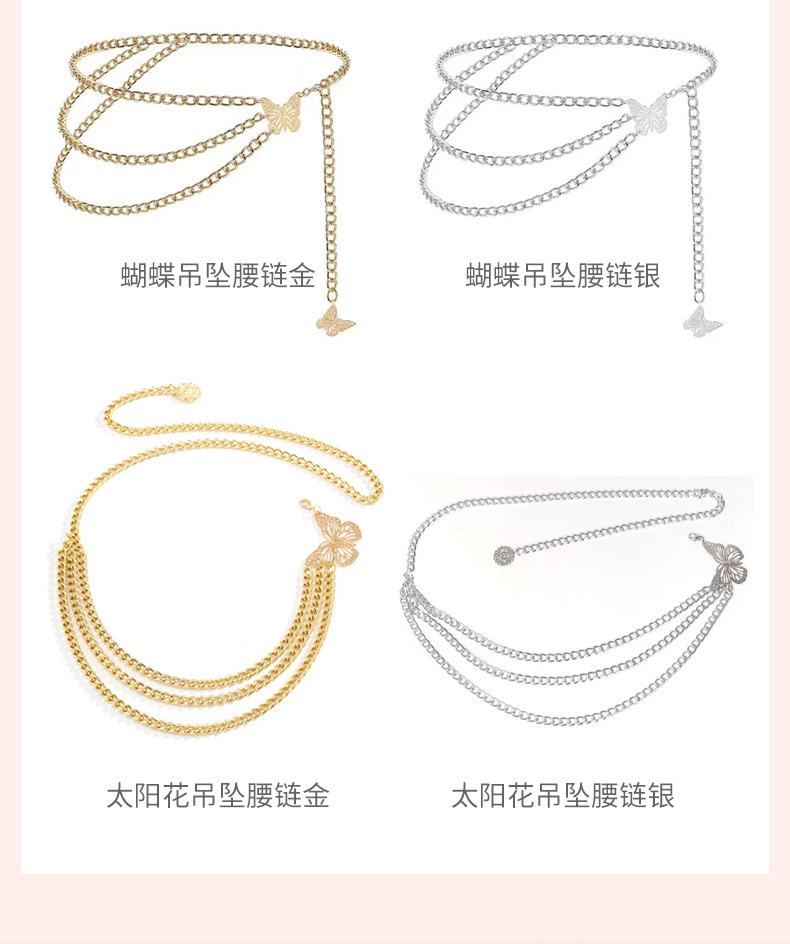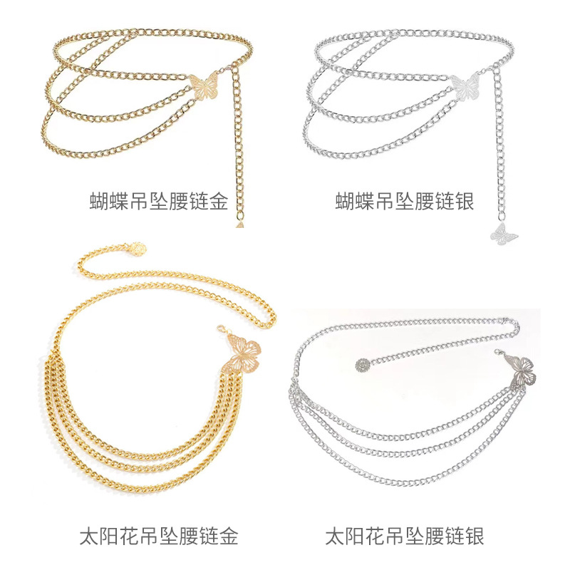 Подсолнечная подвеска на талии цепи золото; Подсолнечная подвеска на талии цепи серебро; Бабочка подвеска талия цепи золото; Бабочка подвеска на талии цепи серебро