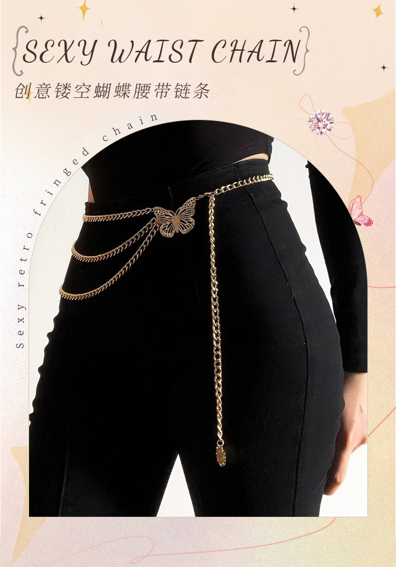 Европейские и американские трансграничные украшения Сексуальное ретро кисточки цепи талии цепи женские творческие полые бабочки