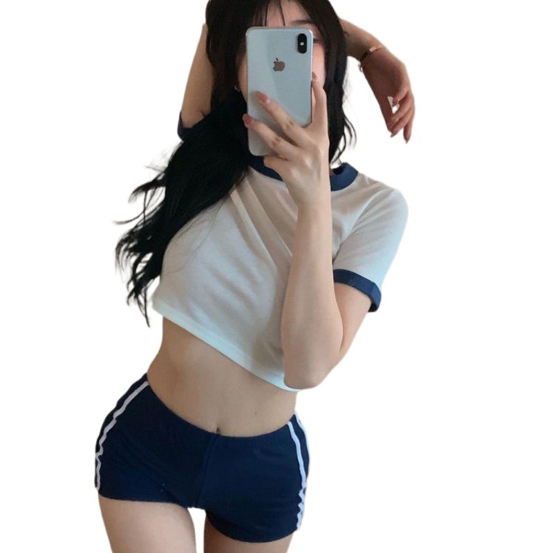 Женская японская одежда женская летняя чистая ветерка тонкая сексуальная черлидор спортивный модный набор футболки шорты прилив