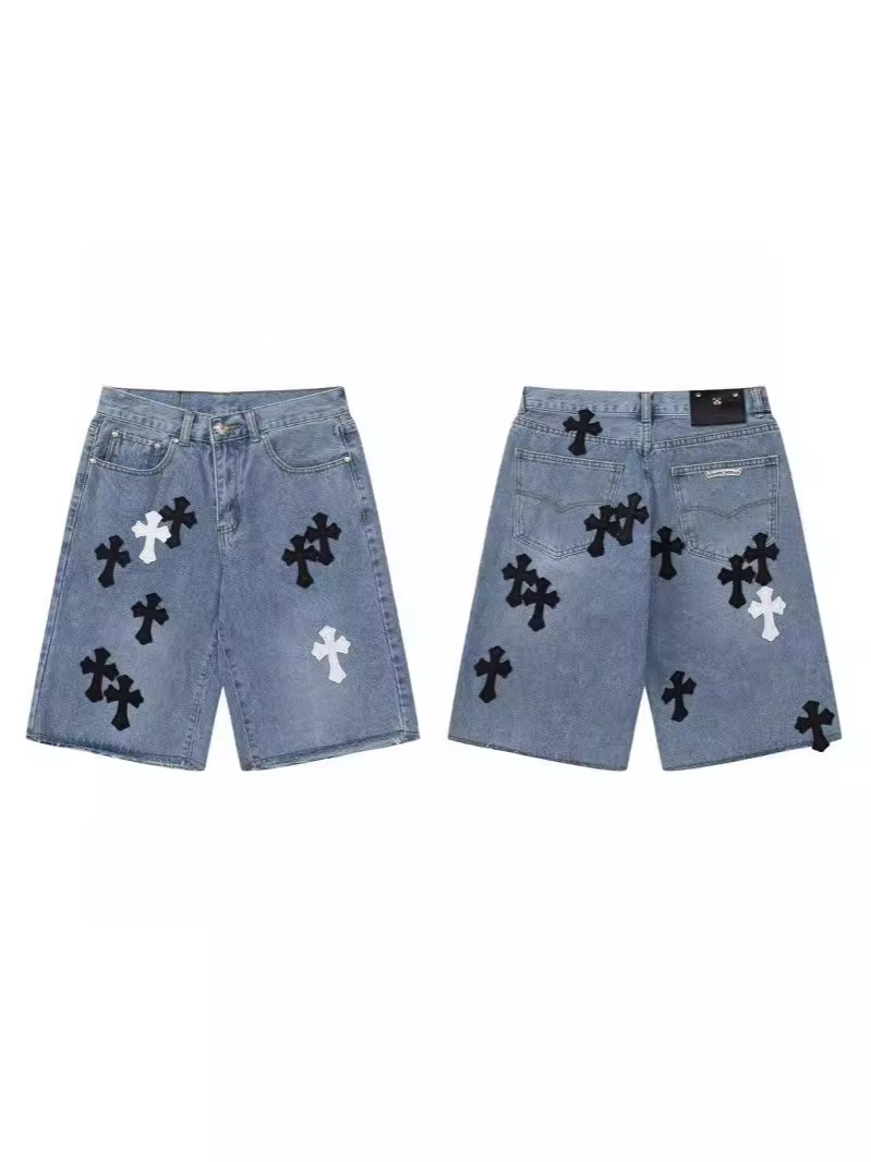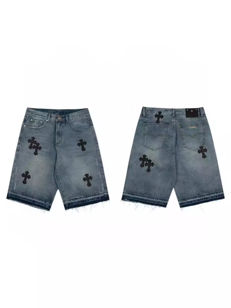 24SS CH крестовый наклейка вышивка старые джинсовые шорты укороченные брюки пара трансграничных эксклюзивные предложения