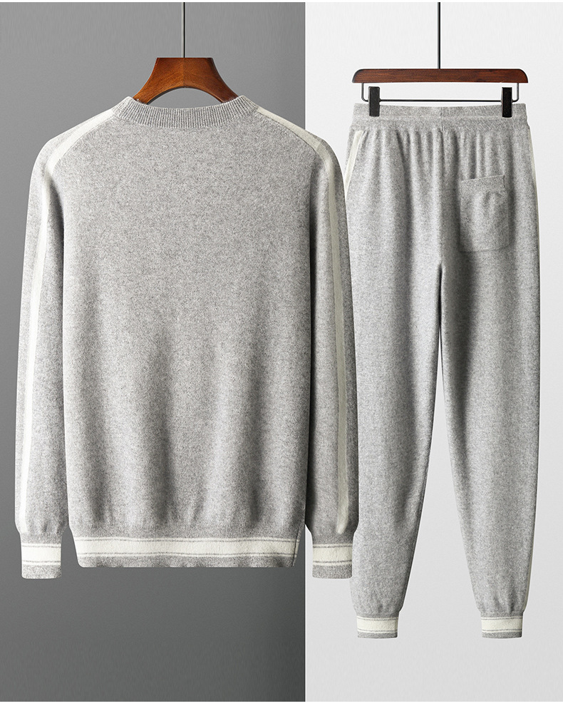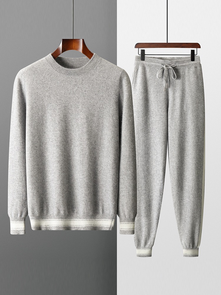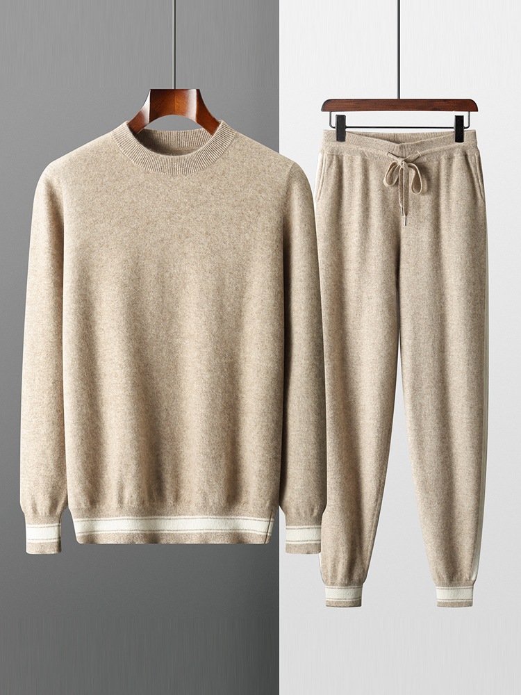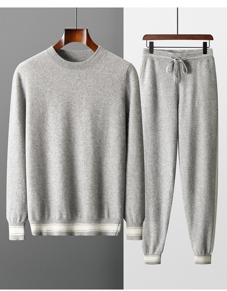 2024 новый стиль повседневный спортивный горный кашемировый свитер мужской круглый свитер теплый свитер с кашемировыми брюками мужской