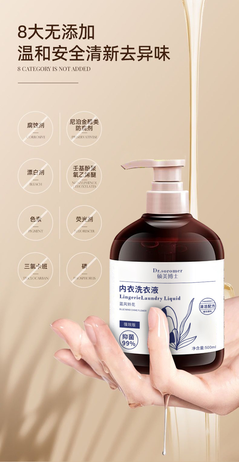 Стиральное средство для белья доктора Шуомей (синий колокольчик) 500ml; Доктор Шомей Нижнее белье Стиральное средство (Гардения Сад) 500ml
