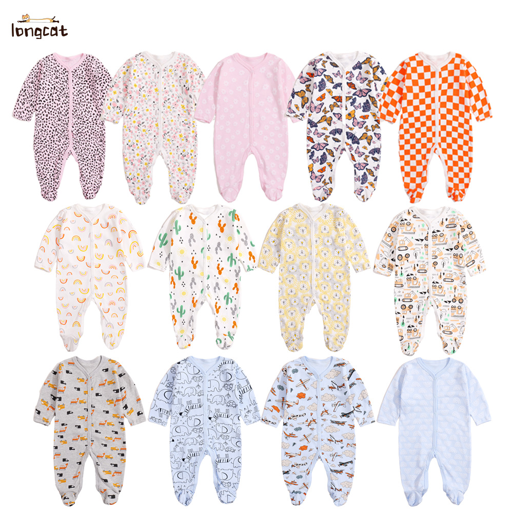 Весенне-осенний комбинезон для новорожденных из хлопка, с длинными рукавами, унисекс, для ползания