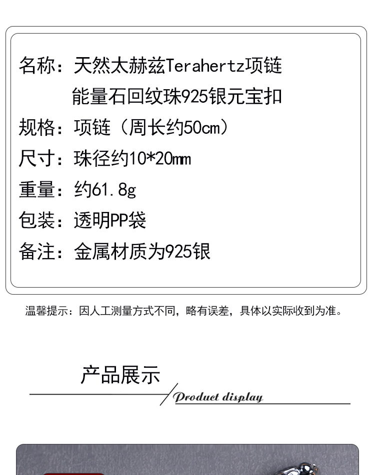 Натуральный терагерцовый реверс ожерелье слишком силиконовый камень 925 Серебряный слиток пряжка Физический подарок для мужчин и женщин