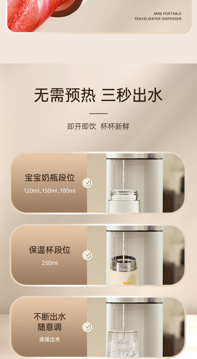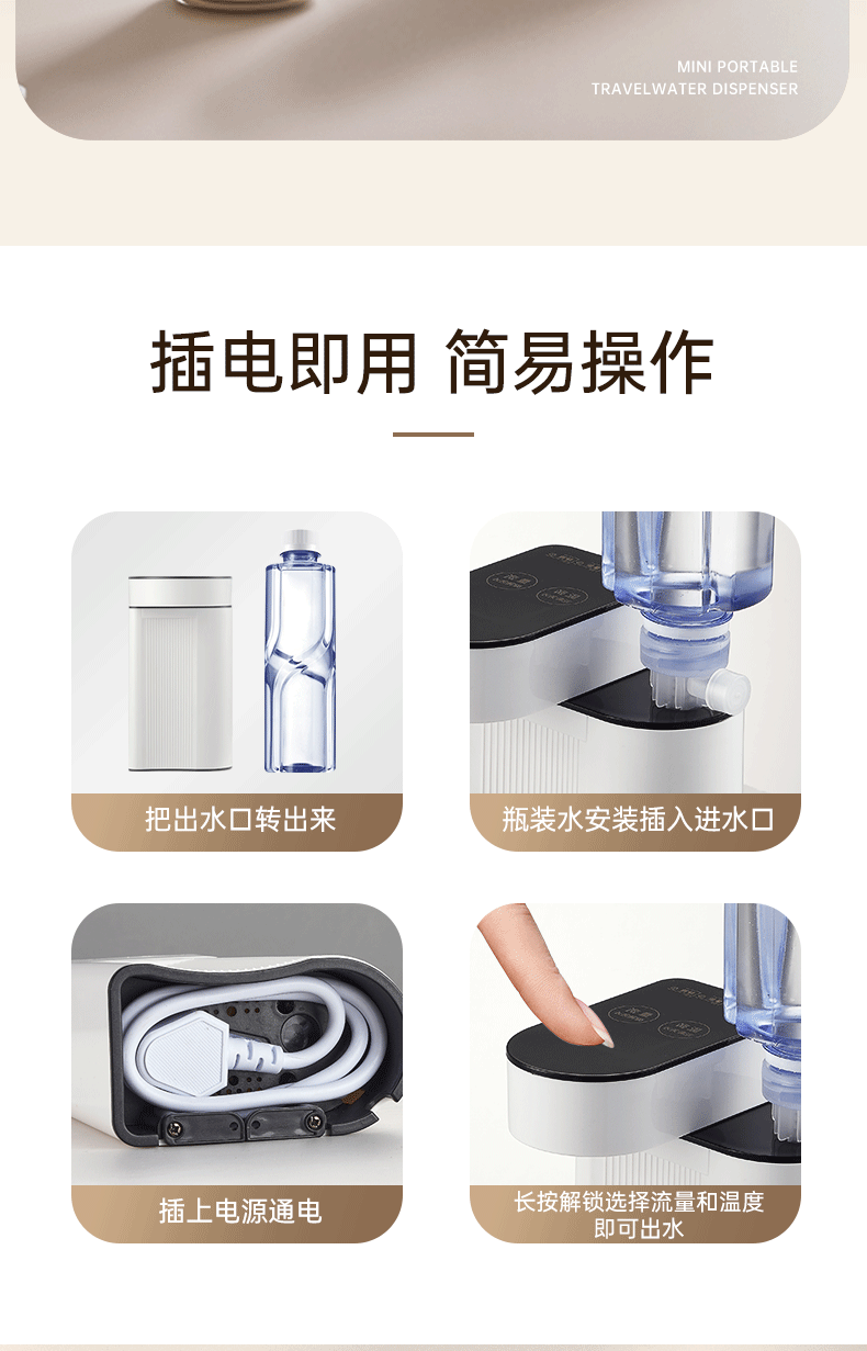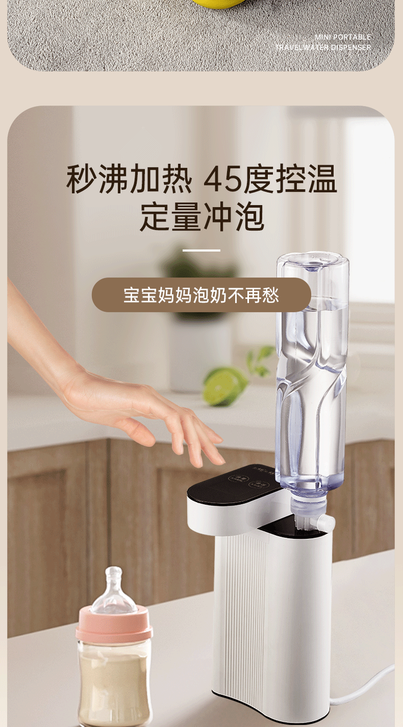 Портативный диспенсер для минеральной воды, электрический чайник, компактный быстронагревающийся водонагреватель для настольного использования и мгновенного подогрева молока.
