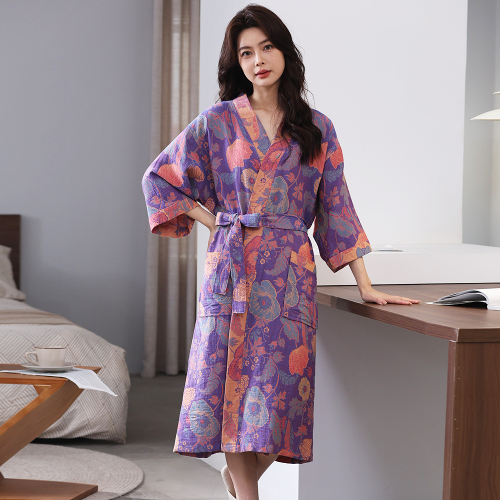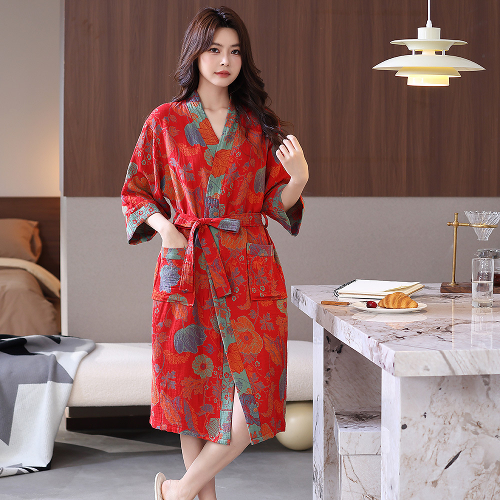 Категория A Весна и Лето Тонкая пижама из хлопка с двойным марлей, халат, домашняя одежда, ночная одежда, пара, впитывающая воду, быстросохнущие халаты