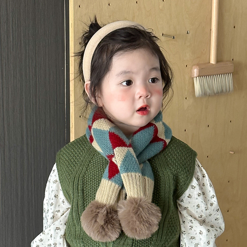 Детские шарфы для мальчиков и девочек модные иностранные крестообразные нагрудники осенние и зимние корейские версии теплые и контрастные детские шарфы