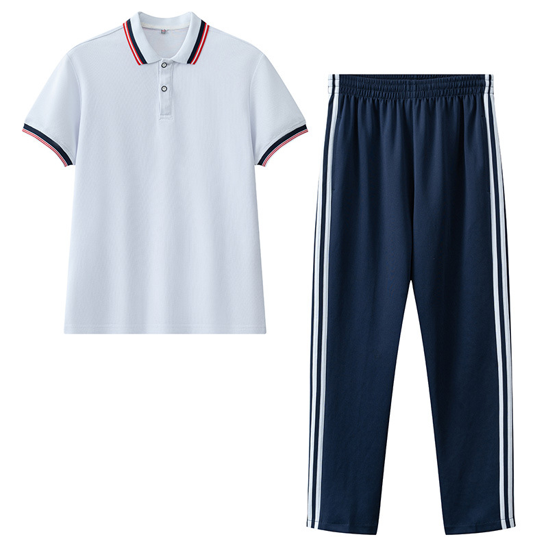 Темно-синие одиночные брюки летом; Белая футболка; Синяя футболка; Белый комплект с короткими рукавами; Синий комплект с короткими рукавами