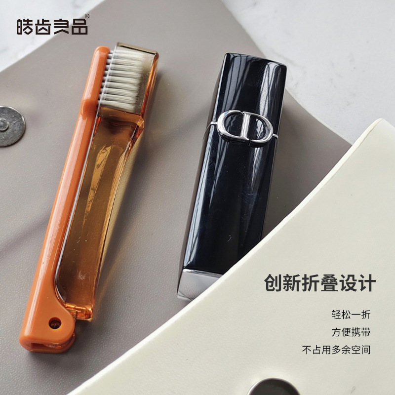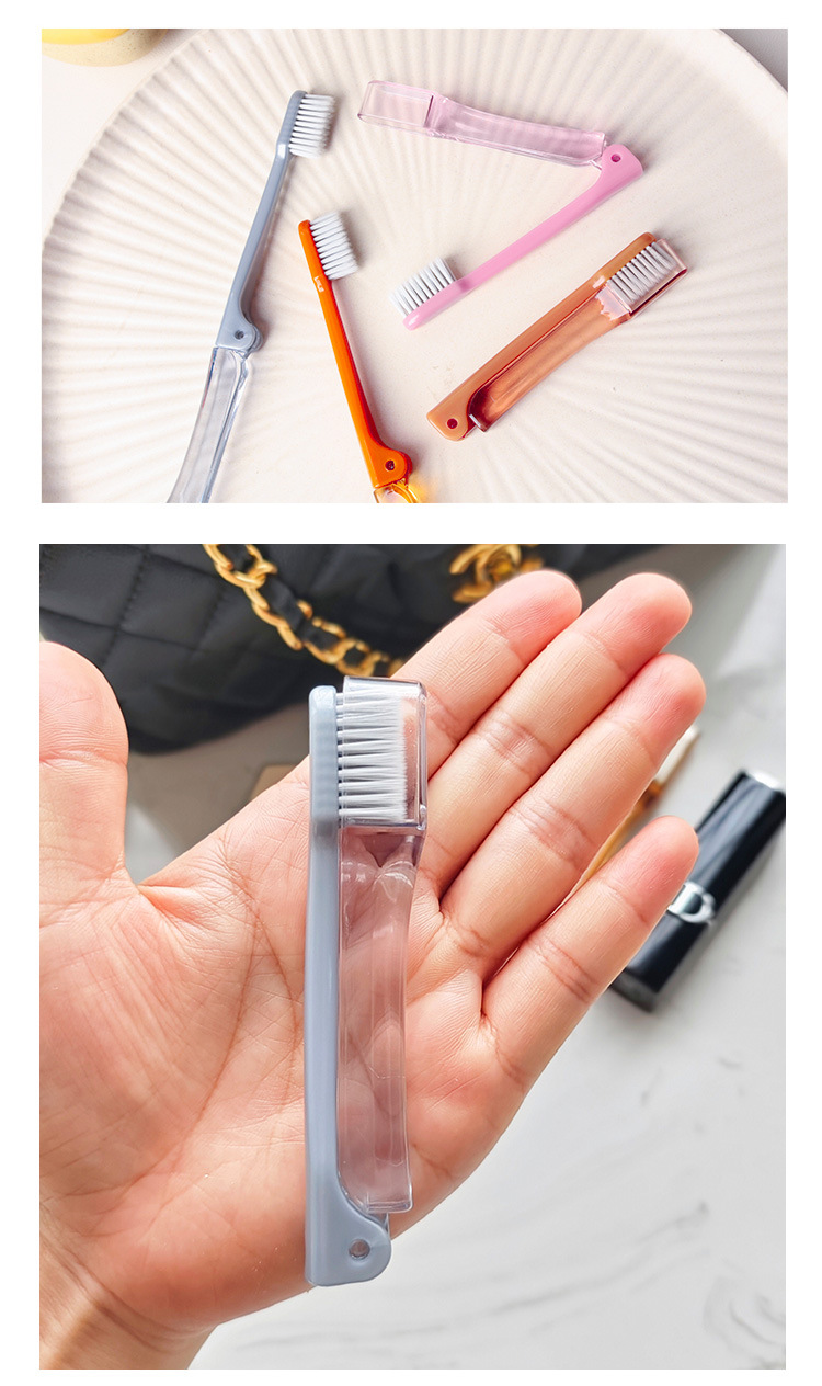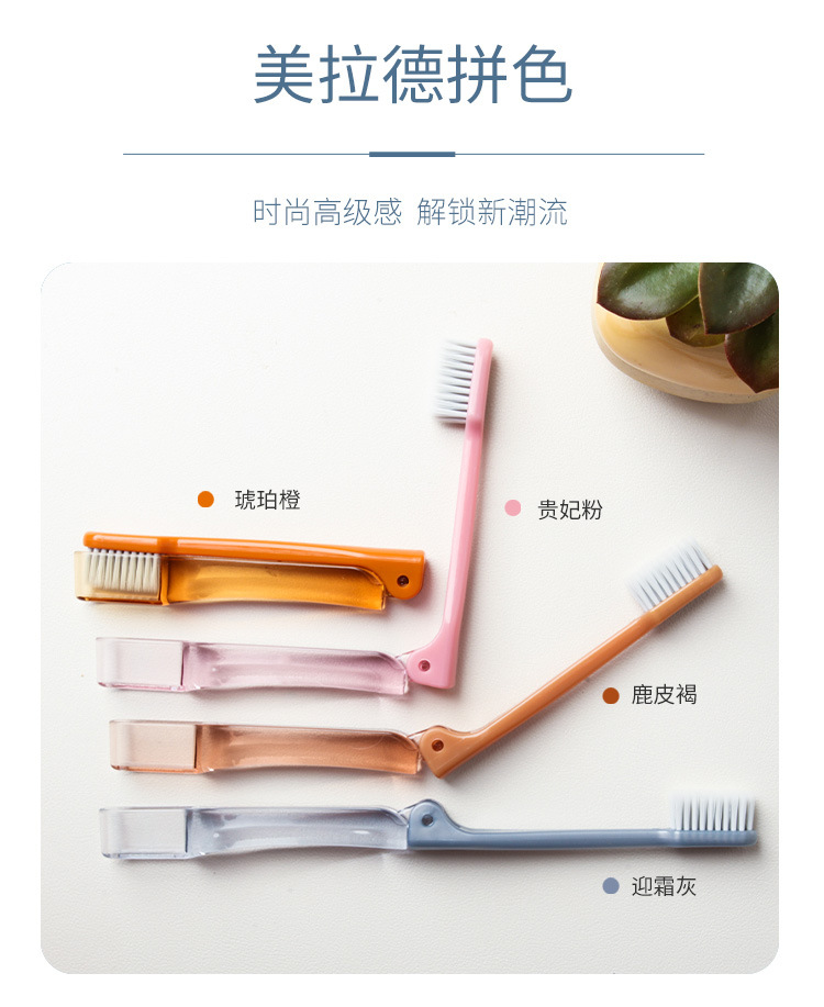Складная зубная щетка оранжевого цвета; Складная зубная щетка серая; Складная зубная щетка розовая; Складная зубная щетка кофейного цвета