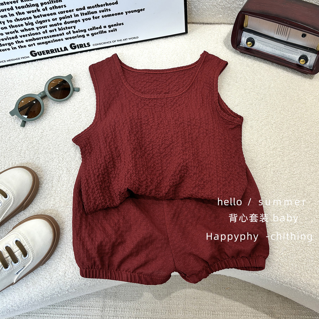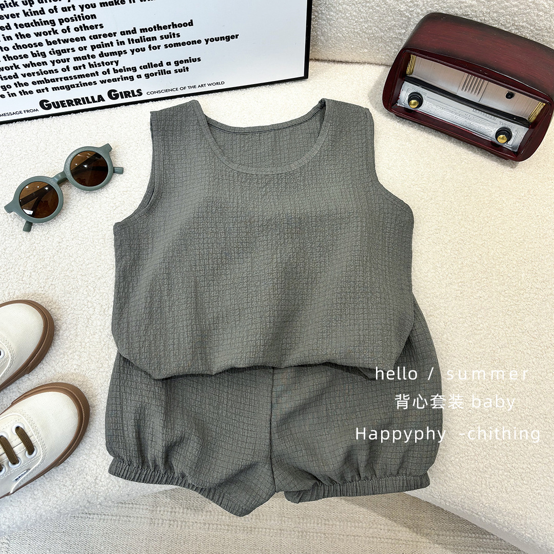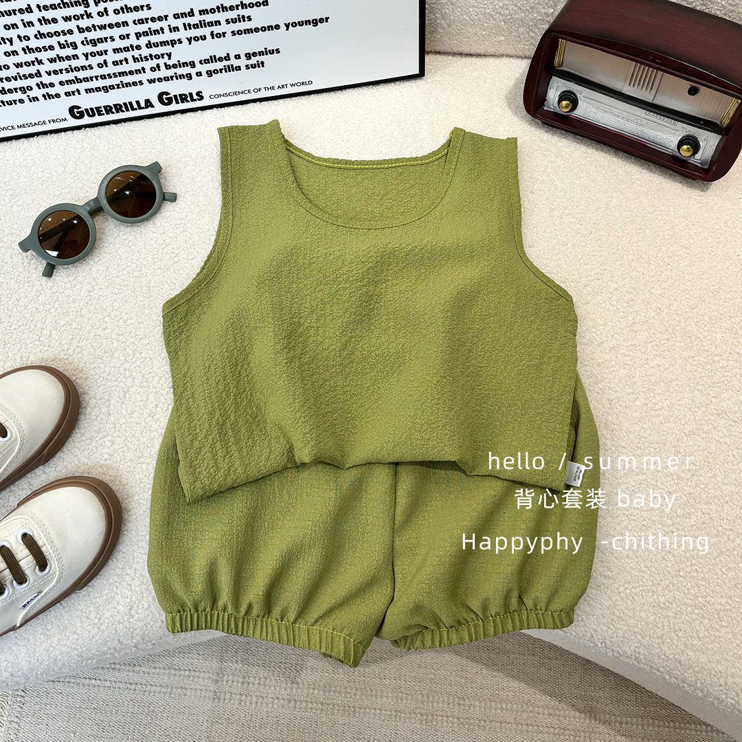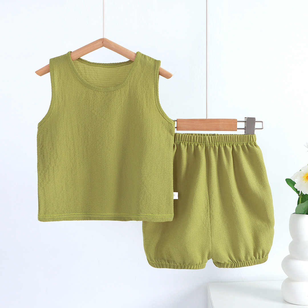Летний детский жилет набор для мальчиков и девочек без рукавов топ детские шаровары брюки из двух частей дышащий летний костюм для мальчиков