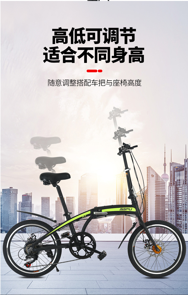 Индивидуальный велосипед с дисковыми тормозами 20inch года, складной велосипед с регулируемой скоростью, легкий велосипед, складной велосипед для вождения в багажнике