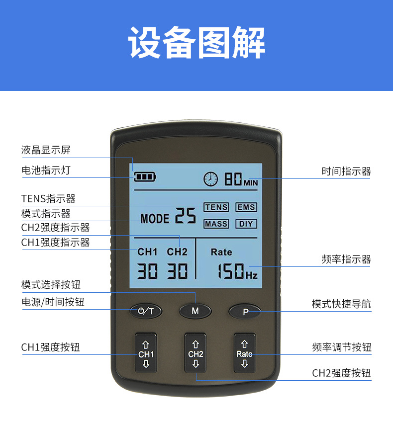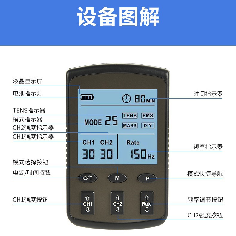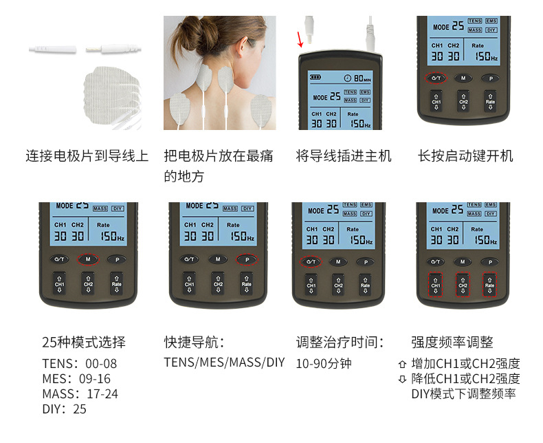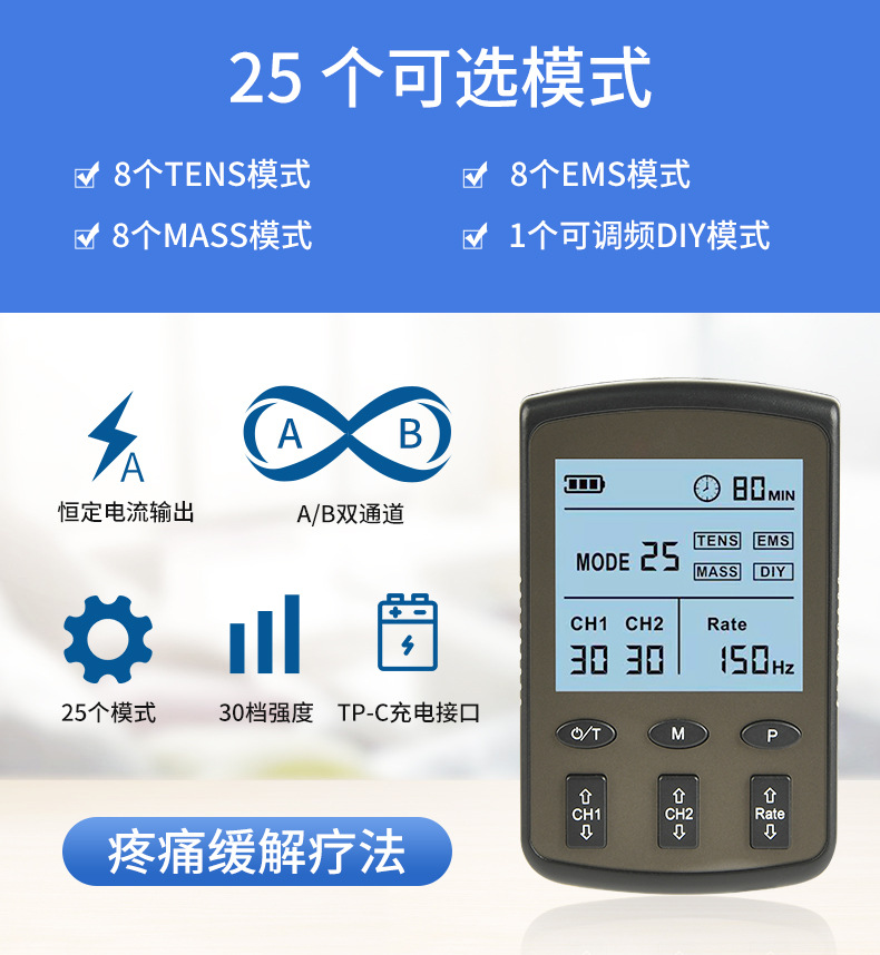 Трансграничный массажер Amazon, устройство для низкочастотной физиотерапии TENS с модулированной частотой, двухканальный мини-аппарат для электротерапии EMS.