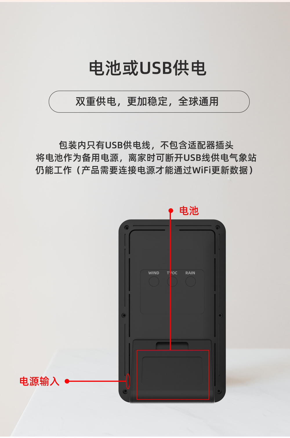 (气象站需要连接电源,才能更新数据)