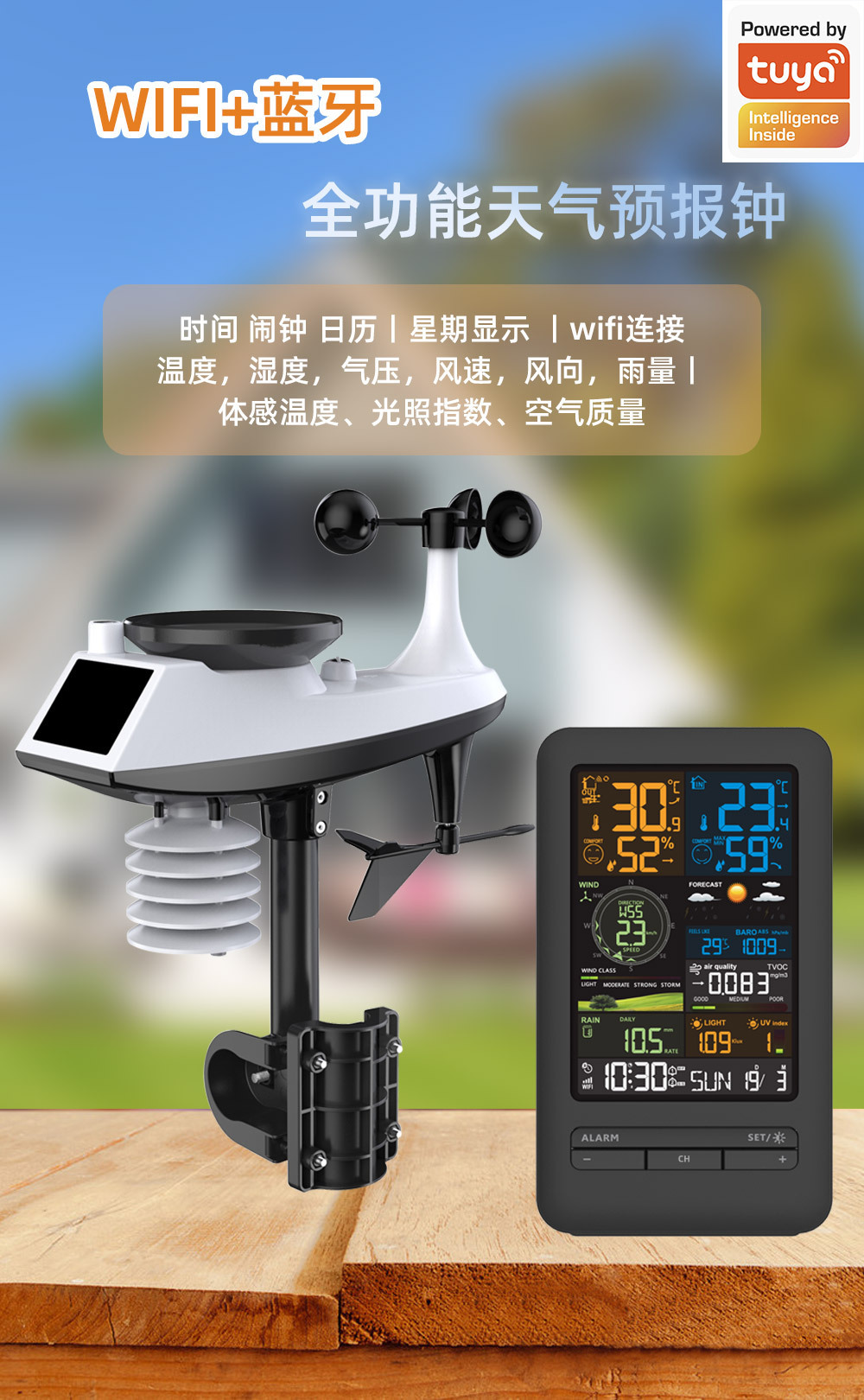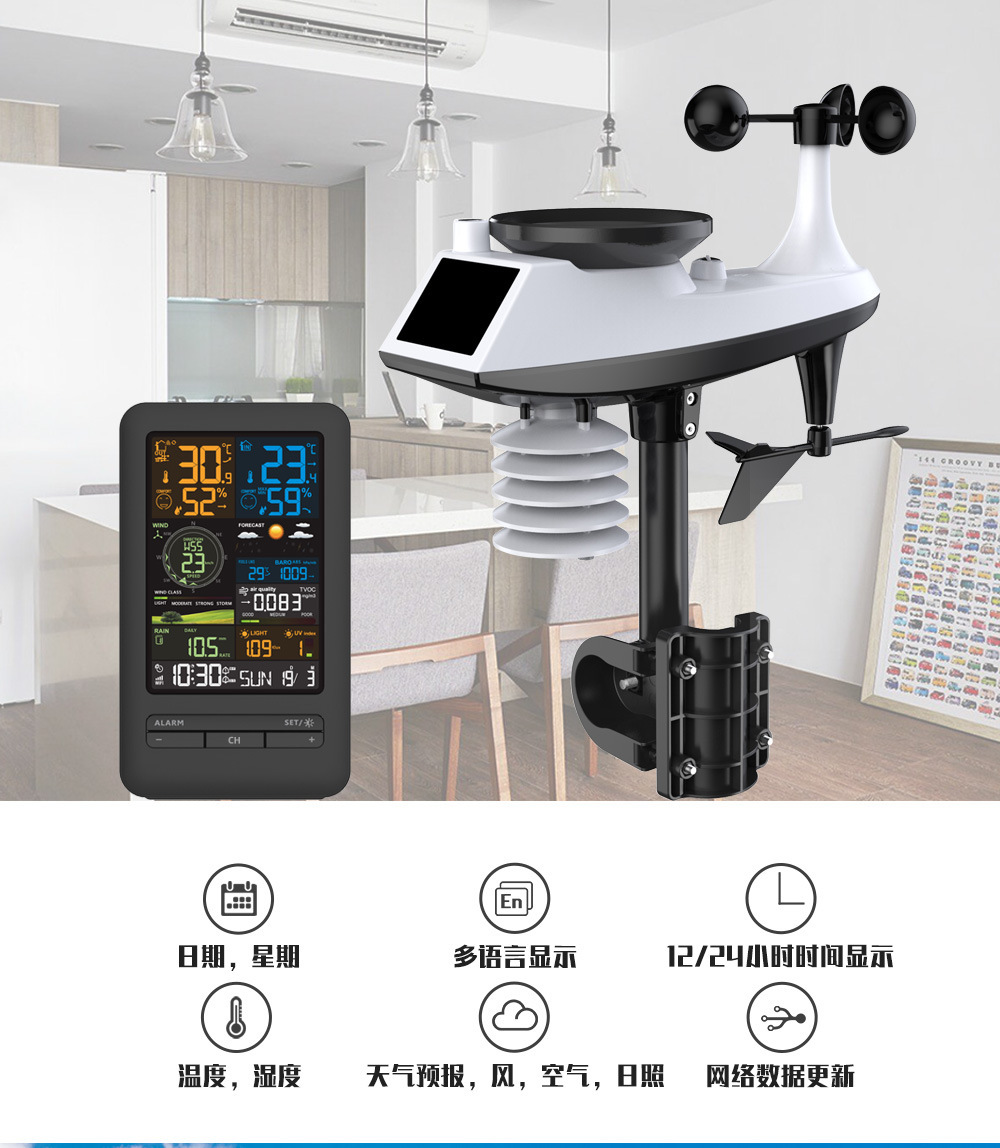 Трансграничный tuya граффити WiFi интеллектуальная метеорологическая станция будильник температура-гигрометр скорость ветра-направление ветра цветной экран цифровые часы