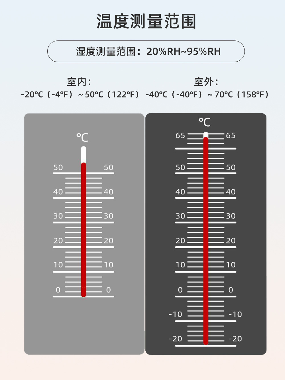 -室内外湿度检测显示的最大范围:20%至95%