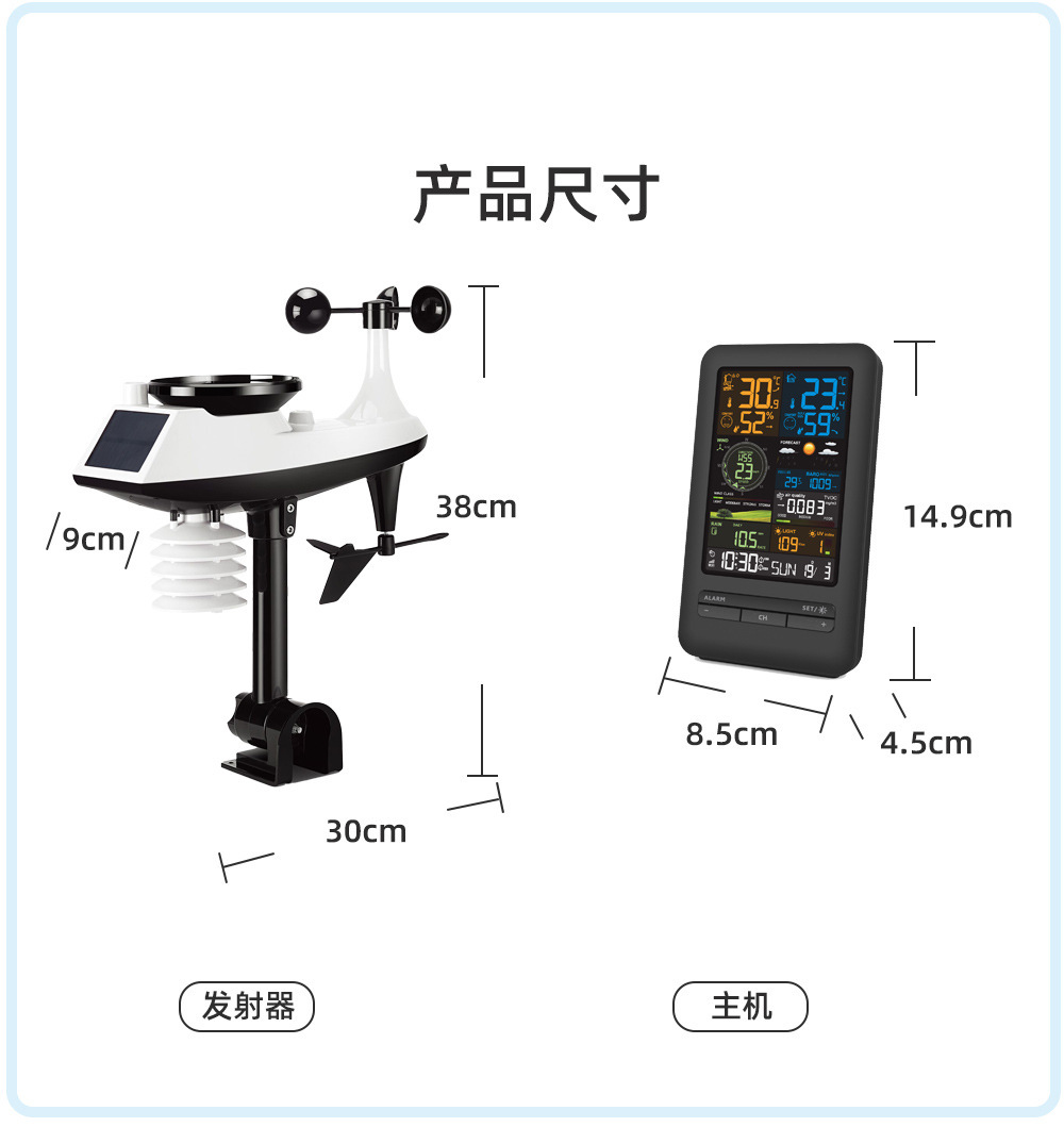 13.风速测量范围:0至180公里/小时(0至111英里/小时)