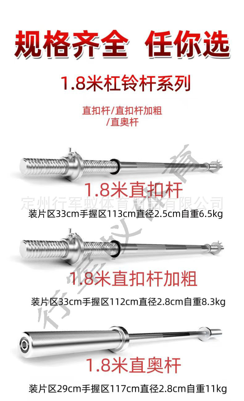 Короткий A1 поставляется с бесплатным стопорным кольцом.; 20inch гантель Олимпийская штанга 1 пружина свободной карты; 1.2m прямой стержень с пряжкой и свободной гайкой (диаметр 2,5 см/4,5 кг); 1.2m изогнутый стержень с пряжкой и свободной гайкой (диаметр 2,5 см/4,5 кг); 1.2m большой стержень с пряжкой и свободной гайкой (диаметр 2,5 см/5 кг); 1.5m прямой стержень с пряжкой и свободной гайкой (диаметр 2,5 см/5,5 кг); 1.5m изогнутый стержень с пряжкой и свободной гайкой (диаметр 2,5 см/5,5 кг); 1.5m толстый прямой стержень с пряжкой и свободной гайкой (диаметр 2,8 см/7 кг); 1.8m прямой стержень с пряжкой и свободной гайкой (диаметр 2,5 см/6,5 кг); 1.8m толстый прямой стержень с пряжкой и свободной гайкой (диаметр 2,8 см/8,3 кг); 2m прямой стержень с пряжкой и свободной гайкой (диаметр 2,5 см/7,3 кг); 2m толстый прямой стержень с пряжкой и свободной гайкой (диаметр 2,8 см/9 кг); 2.2m толстый прямой стержень с пряжкой и свободной гайкой (диаметр 2,8 см/10 кг); 1.2m Прямой австрийский стержень поставляется с бесплатным стопорным кольцом (диаметр 2,5 см/6,1 кг).; 1.2m Стержень Цяо поставляется с бесплатным стопорным кольцом (диаметр 2,5 см/6,1 кг).; 1.2m В комплект поставки Daqu Ao Rod входит свободное стопорное кольцо (диаметр 2,5 см/6,5 кг).; 1.5m Прямой австрийский стержень поставляется с пружиной (диаметр 2,5 см/8,2 кг).; 1.5m Стержень Цяо поставляется с бесплатным стопорным кольцом (диаметр 2,5 см/8,2 кг).; 1.5m В комплект поставки Daqu Ao Rod входит свободное стопорное кольцо (диаметр 2,5 см/9 кг).; 1.8m прямой австрийский стержень (диаметр 2,8 см/11 кг); 2m Прямой австрийский стержень поставляется с бесплатным стопорным кольцом (диаметр 3 см/13 кг),; 2.2m Прямой австрийский стержень поставляется с бесплатным стопорным кольцом (диаметр 2,8 см/14 кг).; 2.2m Толстый прямой австрийский стержень поставляется с бесплатным стопорным кольцом (3 см/15 кг).; 2.2m Жирный и утяжеленный австрийский стержень поставляется с бесплатным стопорным кольцом (диаметр 3 см/20 кг).; 1.2m Прямой опорный стержень поставляется с пружиной (диаметр 2,8 см/9,2 кг).; 1.2m изогнутый стержень подшипника поставляется с свободным стопорным кольцом (диаметр 2,8 см/9,2 кг).; 1.5m Вал подшипника поставляется с пружиной (диаметр 2,8 см/12 кг).; 1.8m Вал подшипника поставляется с пружиной (диаметр 2,8 см/15 кг).; 2.2m Опорный стержень/700 фунтов. Сталь №45 поставляется с фиксирующим кольцом (диаметр 3 см/20 кг); 2.2m Шарнирный стержень/1000 фунтов, изготовлен из хромомолибденовой стали 42, поставляется с фиксирующим зажимом (диаметр 2,8 см/20 кг); 2.2m Шарнирный стержень/1500 фунтов, изготовлен из хромомолибденовой стали 42, поставляется с стопорным кольцом (диаметр 3 см/20 кг)