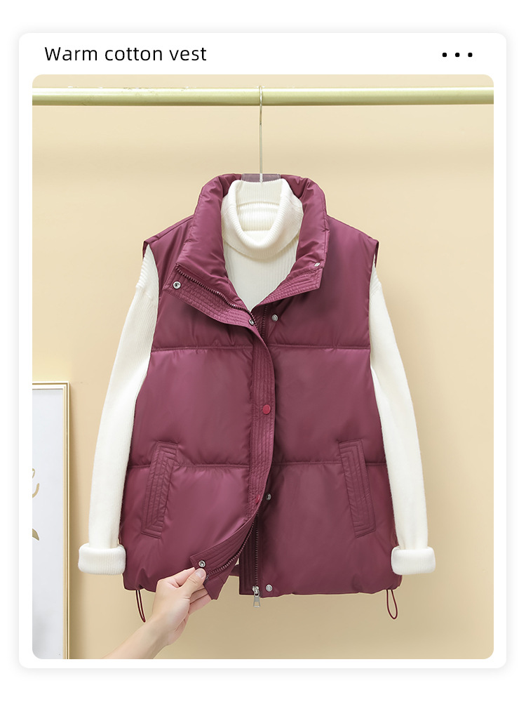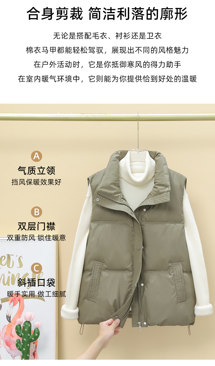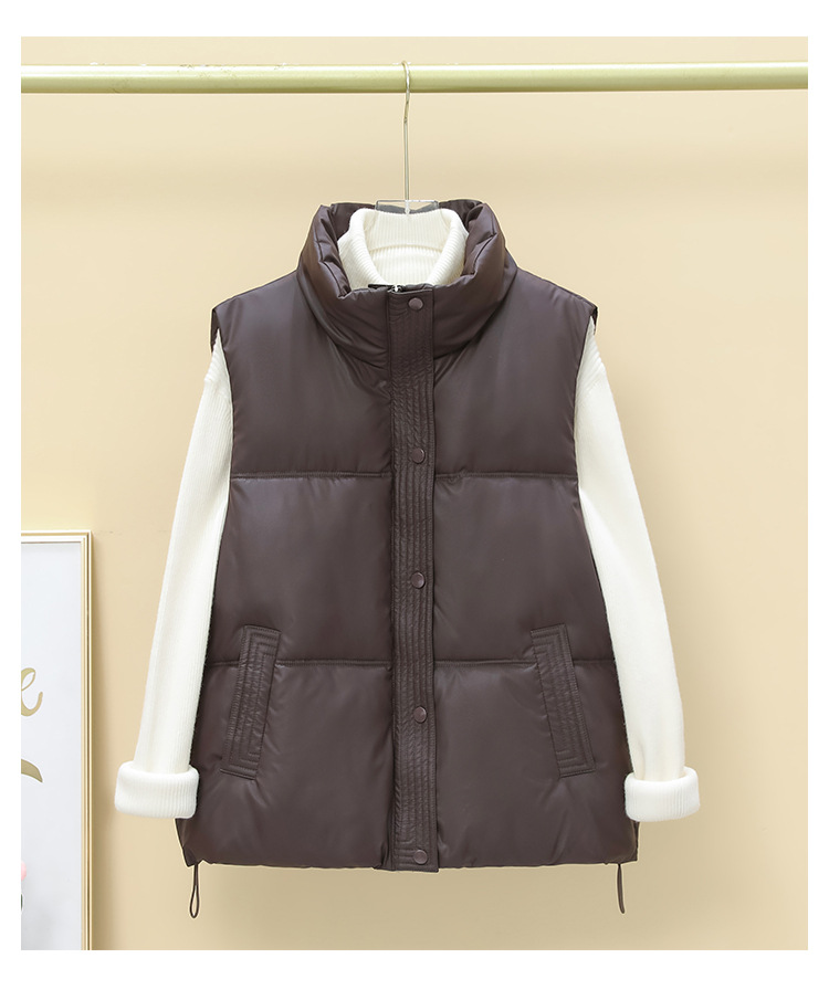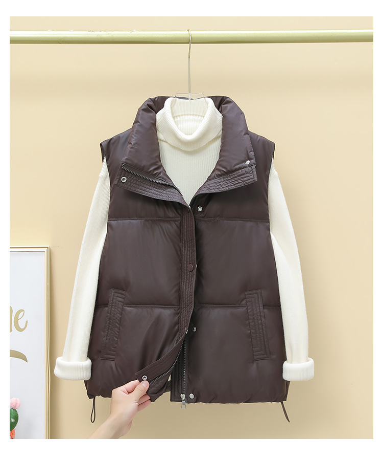 Пуховый хлопковый моющийся жилет из искусственной кожи для женщин 2024, осень и зима, новая мода, теплый свободный хлопковый жилет с воротником-стойкой, внешний жилет