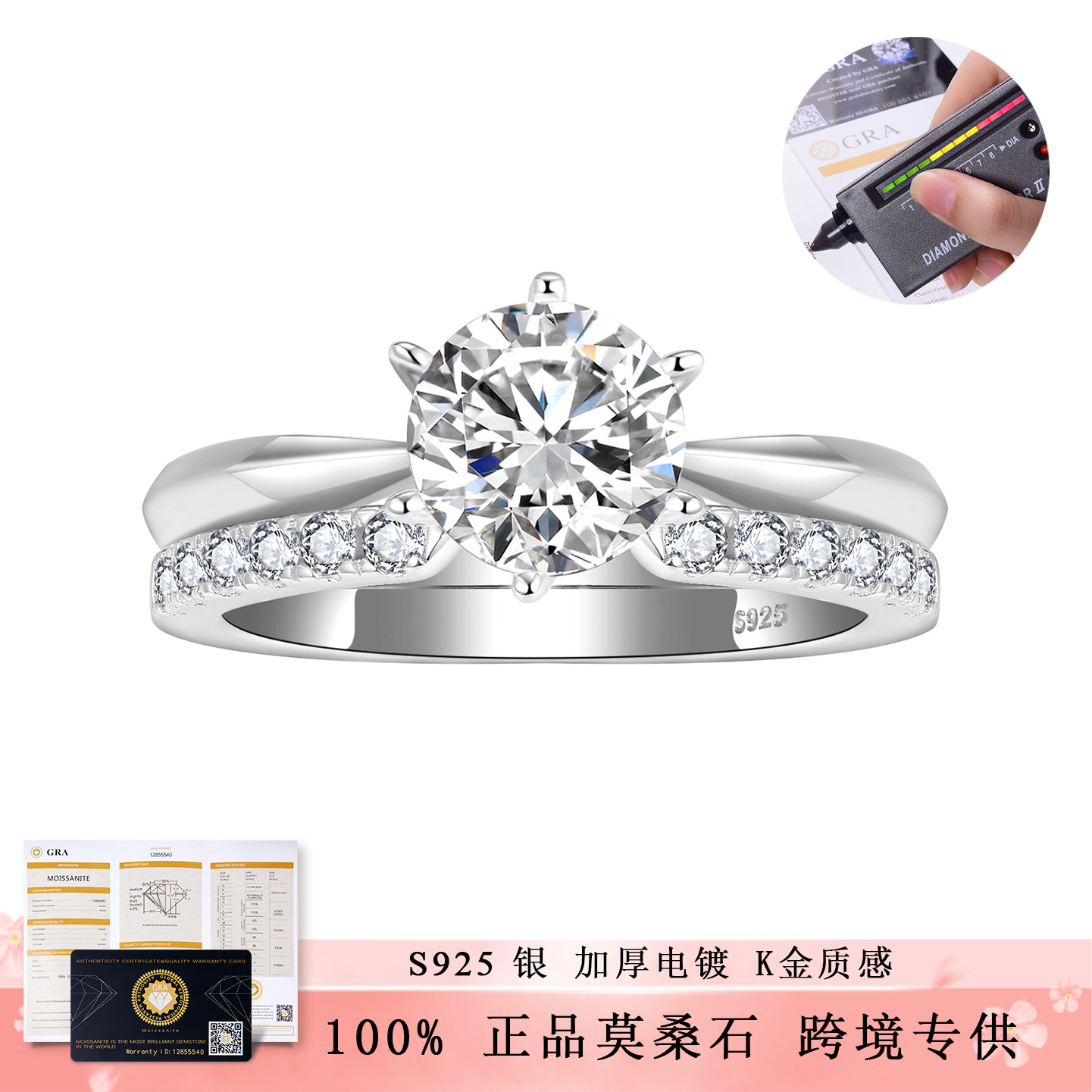 Новинка 2023 года, универсальное открытое кольцо с трансграничной независимой станцией, посеребренное кольцо S925 из 18-каратного золота с муассанитом для женщин