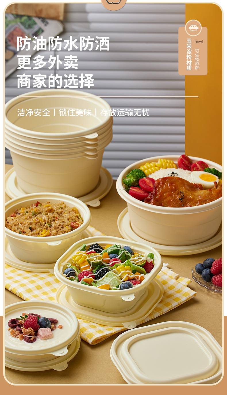 Одноразовая миска из кукурузного крахмала для ланч-бокса для пищевых продуктов на вынос