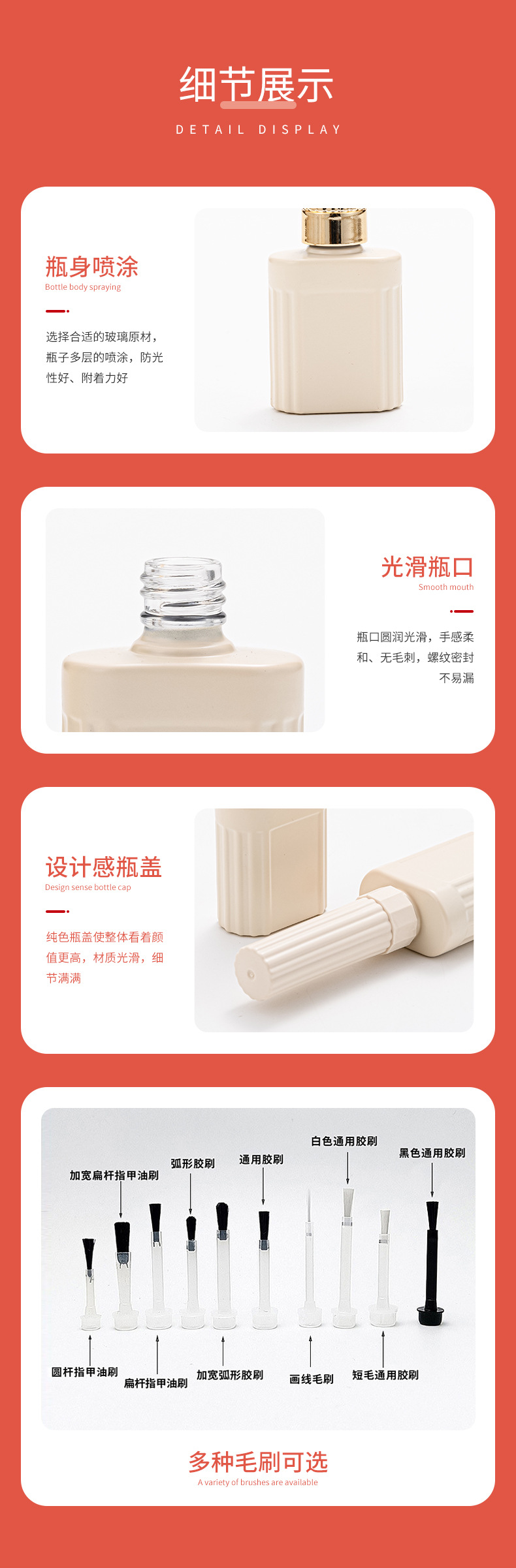 Матовый бежевый флакон для лака для ногтей на 10 мл, пустой флакон, асимметричный стиль с кисточкой, клей для лака для ногтей, пустой флакон, готовая стеклянная бутылка
