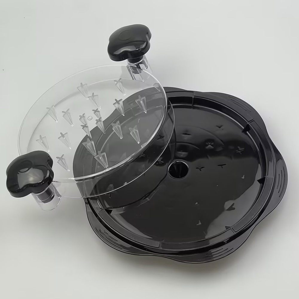 Прозрачная круглая крышка черного цвета.; Прозрачная круглая крышка оранжевого цвета.; Прозрачная круглая крышка красного цвета