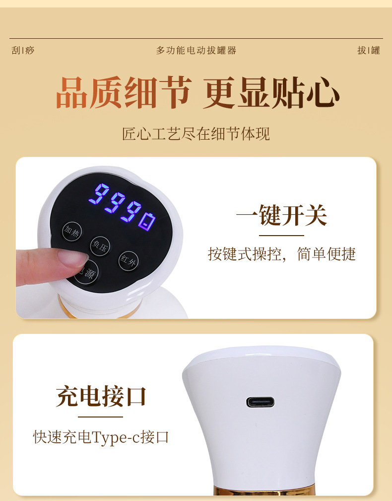 Gong's Smart Home Кнопка с электрическим нагревом Зарядка Автоматический массажный прибор Горячий Вакуумный дыхательный бак