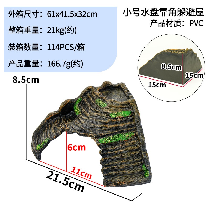 Средний пень (смола); Средний топольный укрытие (ПВХ); Маленький укрытие в виде дерева (ПВХ); Средний укрытие для деревьев (ПВХ); Большой укрытие для дупла дерева (ПВХ); Длинная лежанка-укрытие в виде дерева (ПВХ); Пи-образный укрытие для ствола дерева — жёлтый (ПВХ); Пи-образный укрытие для ствола дерева — серый (ПВХ); Маленький укрытие из коры (ПВХ); Большой укрытие из коры (ПВХ); S имитация известнякового укрытия (ПВХ); Укрытие из тополевой коры (ПВХ); Жилетка для черепахи размера S, лазалка и терраса (ПВХ); ПВХ-домик для креветок; ПВХ-домик для креветок; Маленькая винная бочка с одним отверстием (ПВХ); Маленькая винная бочка с двойным отверстием (ПВХ); Непористая небольшая винная бочка (ПВХ); Укрытие из коры 1 (смола); Укрытие из коры №2 (ПВХ); Укрытие из коры 3 (смола); Небольшой угловой укрытие для поддона для воды (ПВХ); Укрытие для водной чаши (ПВХ); Прямоугольный навес (ПВХ)