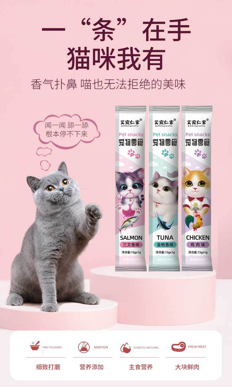 Ai Chongrenjia 1-го поколения питательные полоски для кошек, закуски для кошек, влажный корм, целая коробка, оптовая продажа, прямые продажи с фабрики