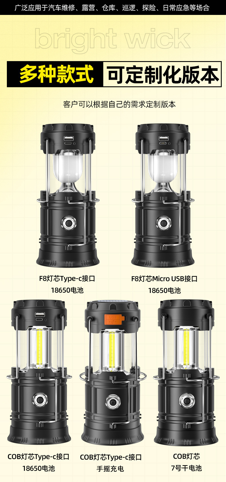 功能 :照明、露营等
