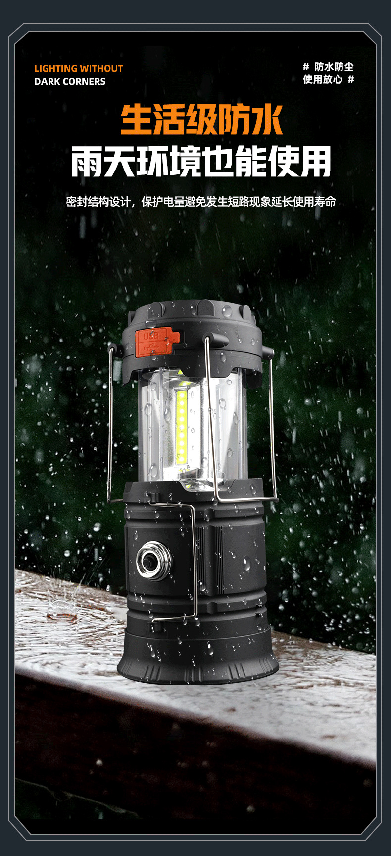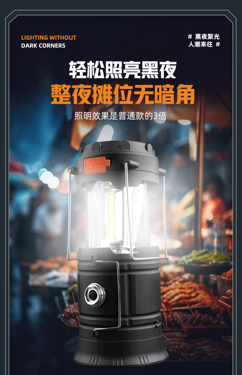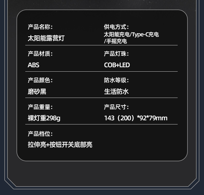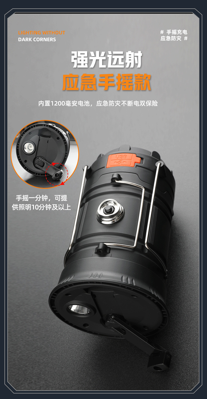 射距:野营功能约6m2+手提灯功能射距约50m