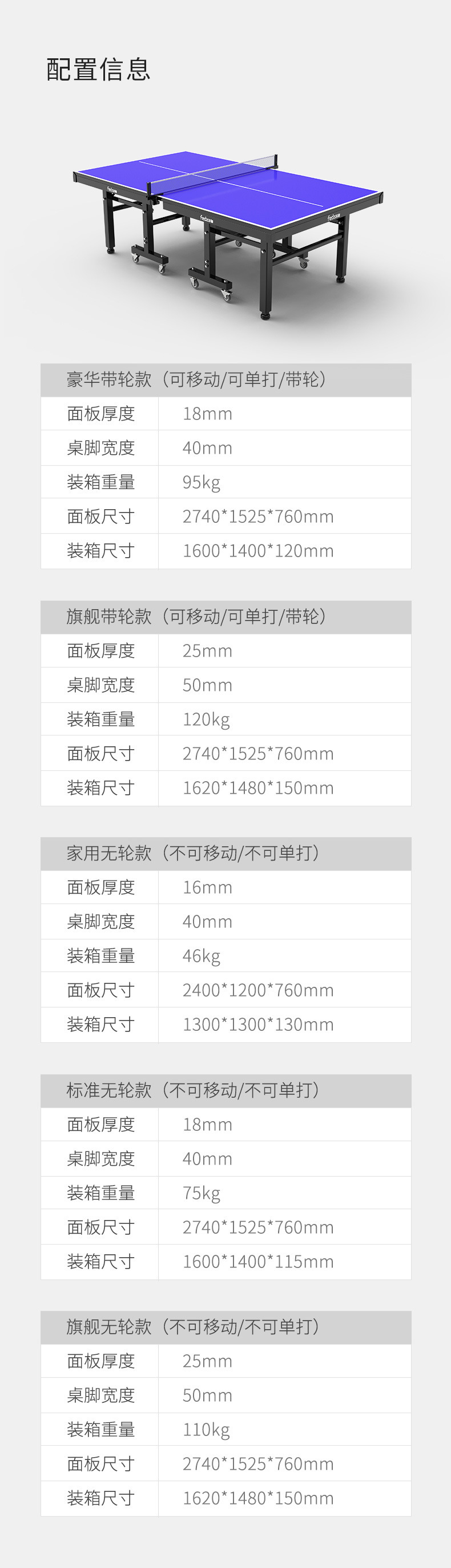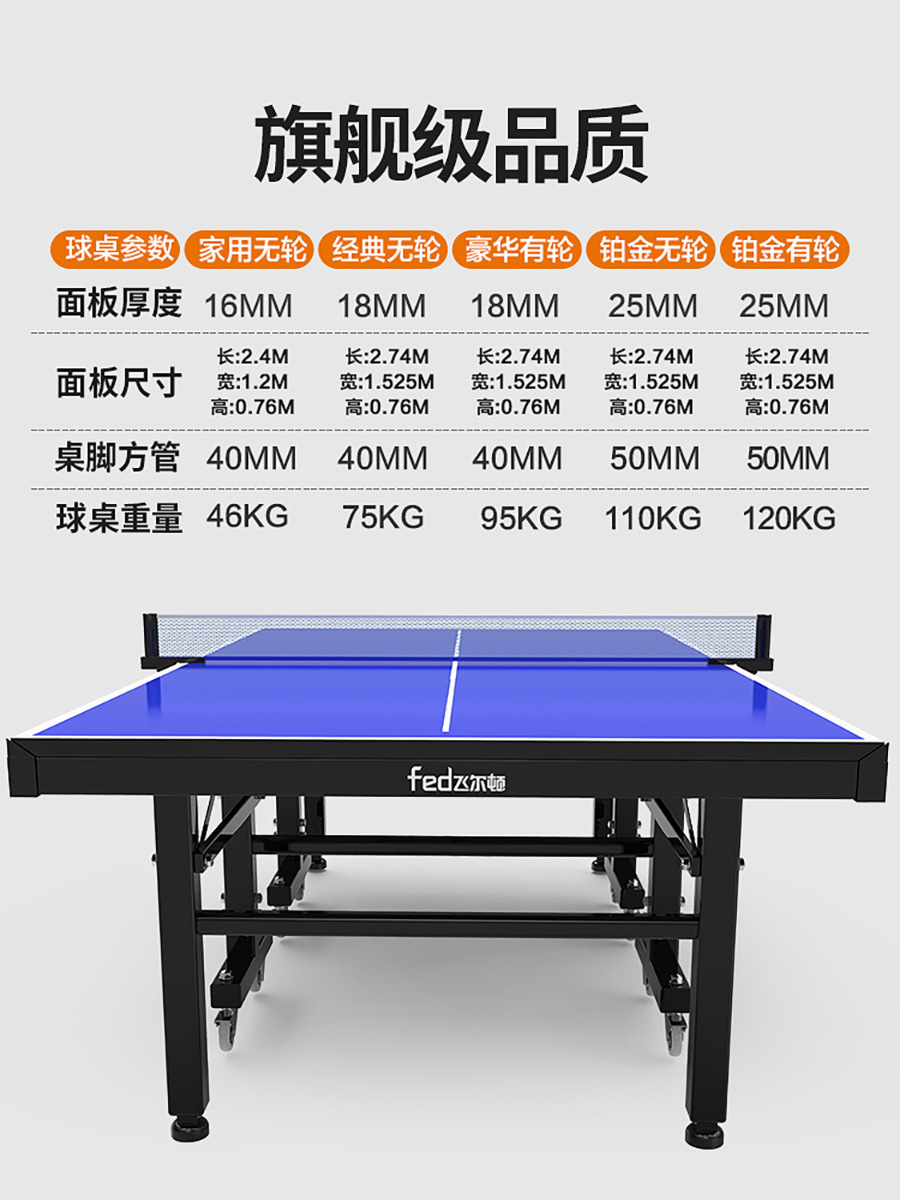 FED/飞尔顿乒乓球桌:家庭娱乐款16MM/家用无轮款16MM/经典国标无轮款16MM/经典国标有轮款16MM/经典国标无轮款18MM/经典国标有轮款18MM/铂金国标无轮款25MM/铂金国标有轮款25MM/红双喜T2赛事球台到手价>=529/768/968/1108/1149/1249/2149/2199/3999元