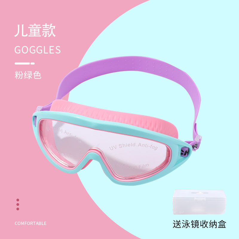 Детские плавательные очки водонепроницаемый туман HD мальчик девочка близорукость большая рамка для защиты глаз плавательные очки соединенные затычки для ушей