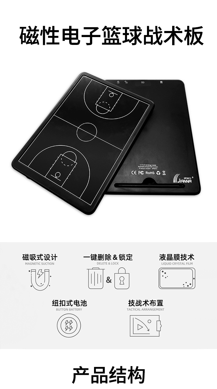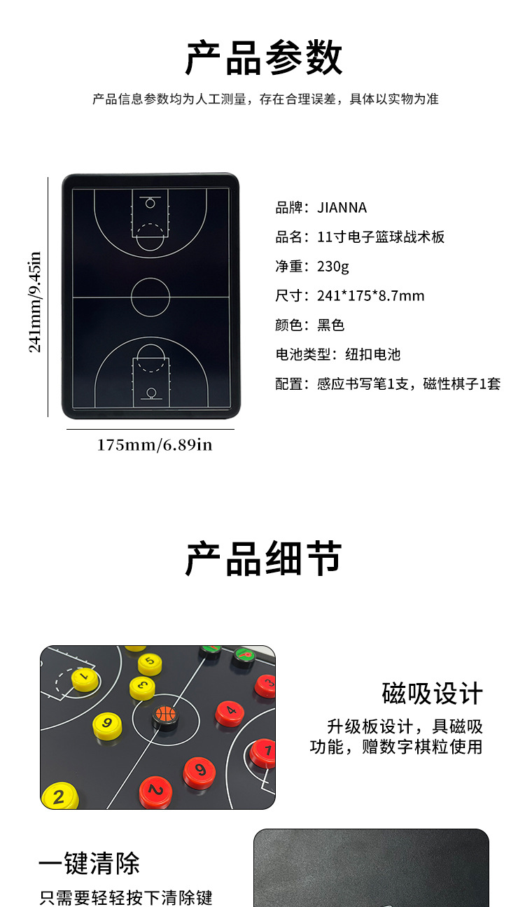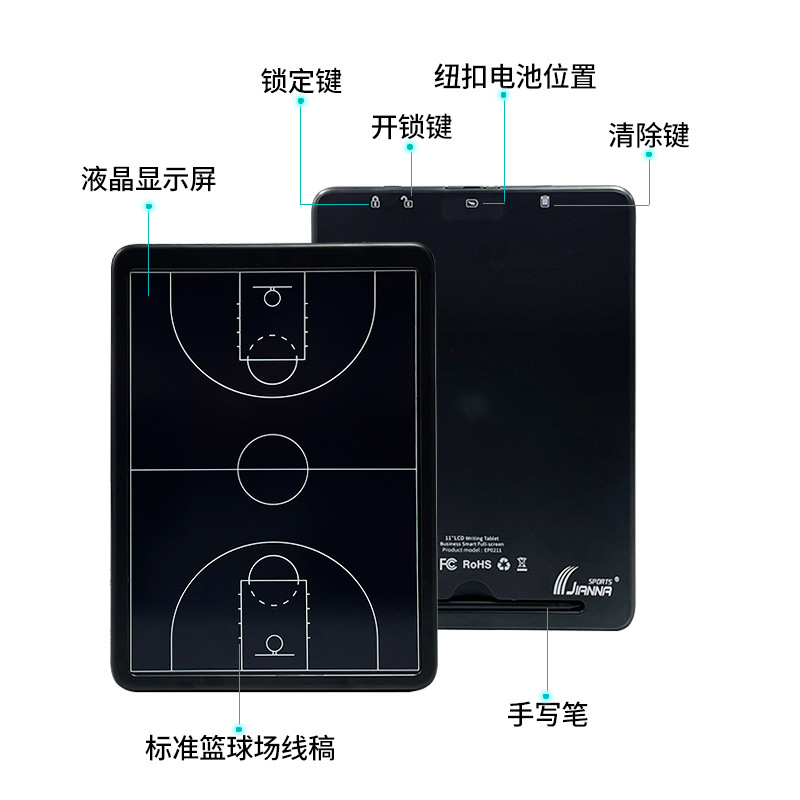 11-дюймовая электронная баскетбольная тактическая доска; 11-дюймовая тактическая сумка