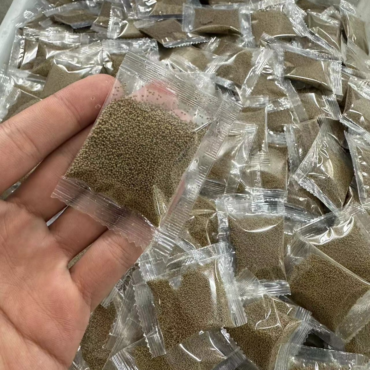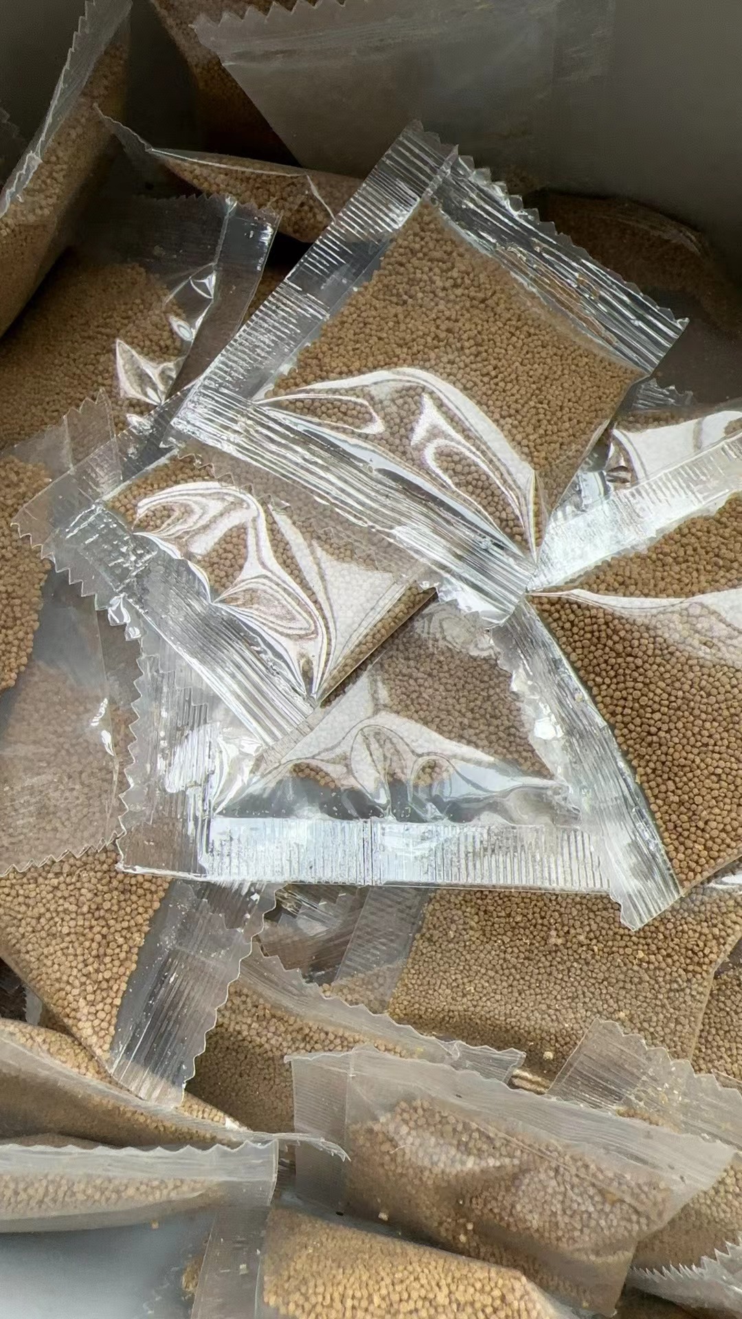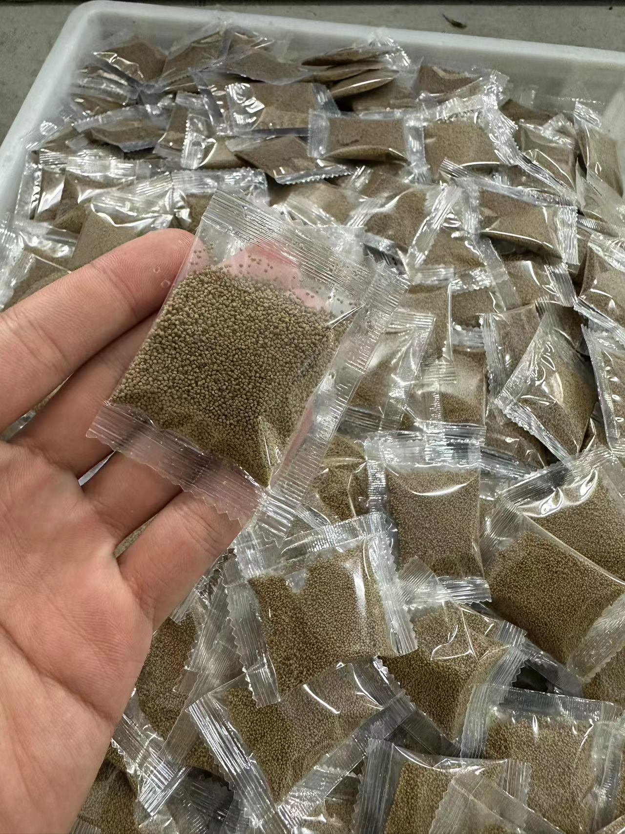 Одна упаковка плавающего корма для рыб диаметром 0,3 мм (3 г).