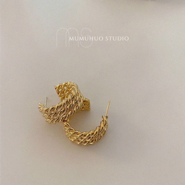 Европейский и американский холодный ветер ретро многослойные изогненные металлические серьги-серьги женские простые и дикие темпераментные серьги-серьги женские серьги