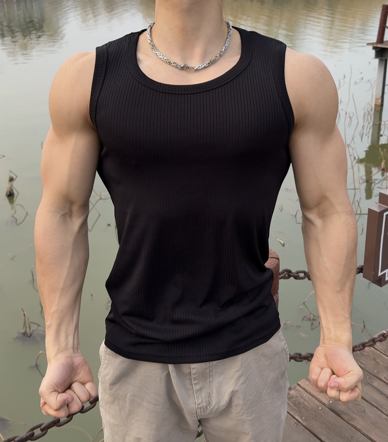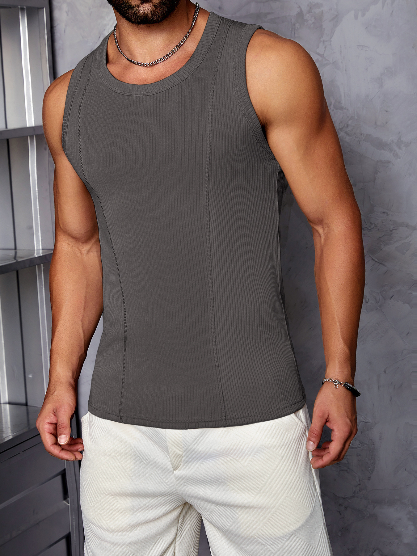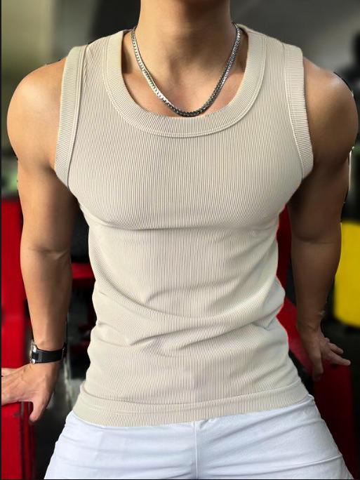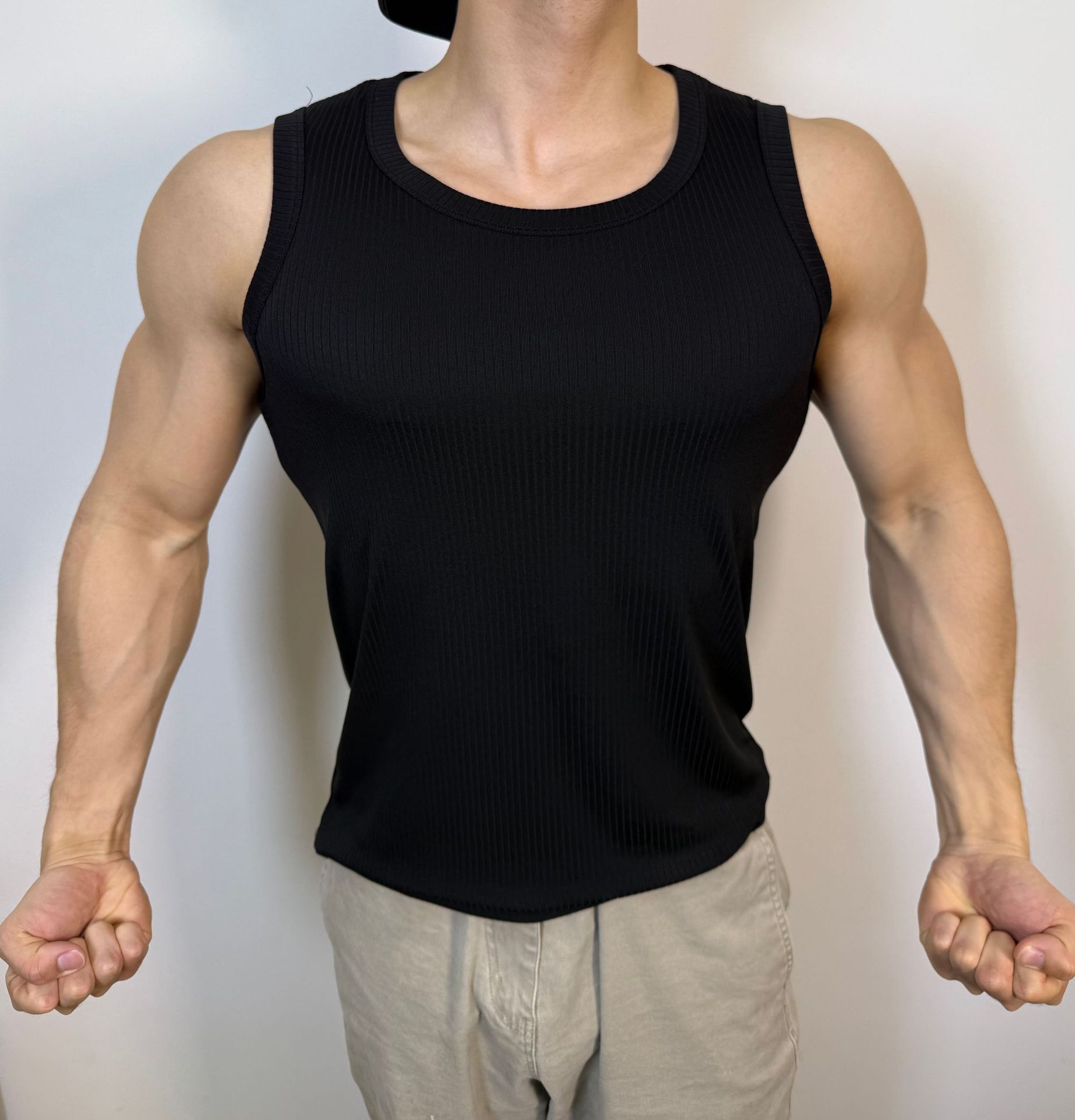 Гребенчатая текстура показывает большой жилет для стройных мышц, быстрые сухие виды спорта, повседневная спортивная одежда, футболка без рукавов с круглым вырезом и плечом