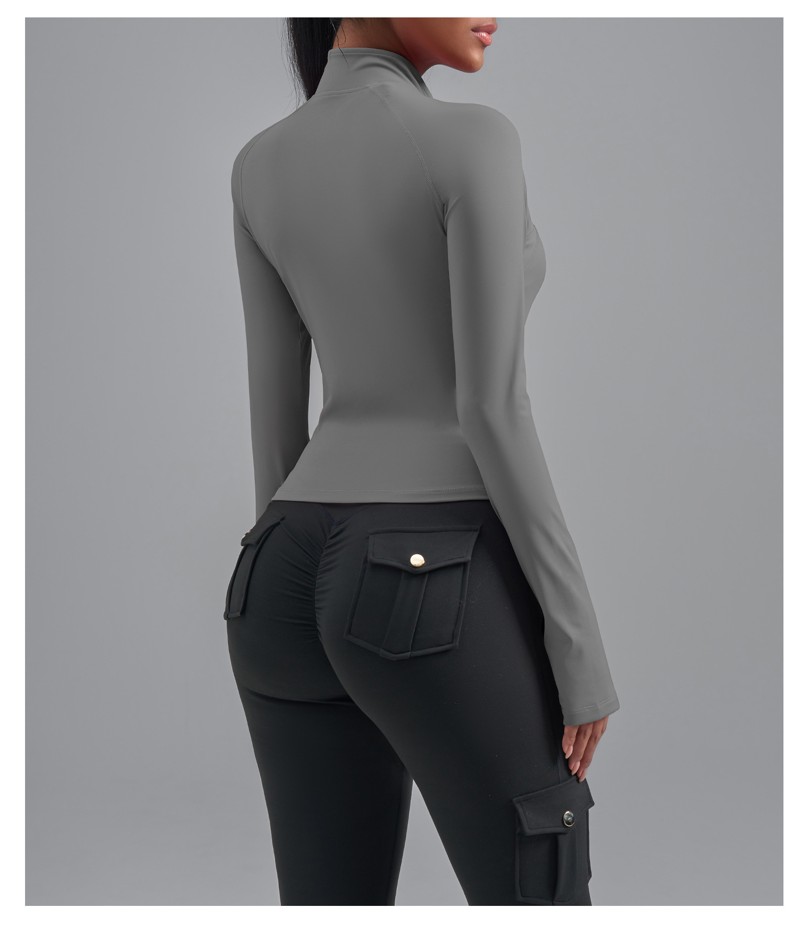 Трансграничная европейская и американская спортивная куртка большого размера на молнии, эластичный плотный спортивный топ европейского размера, утягивающая одежда для йоги для женщин