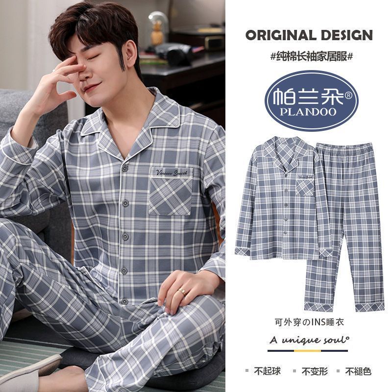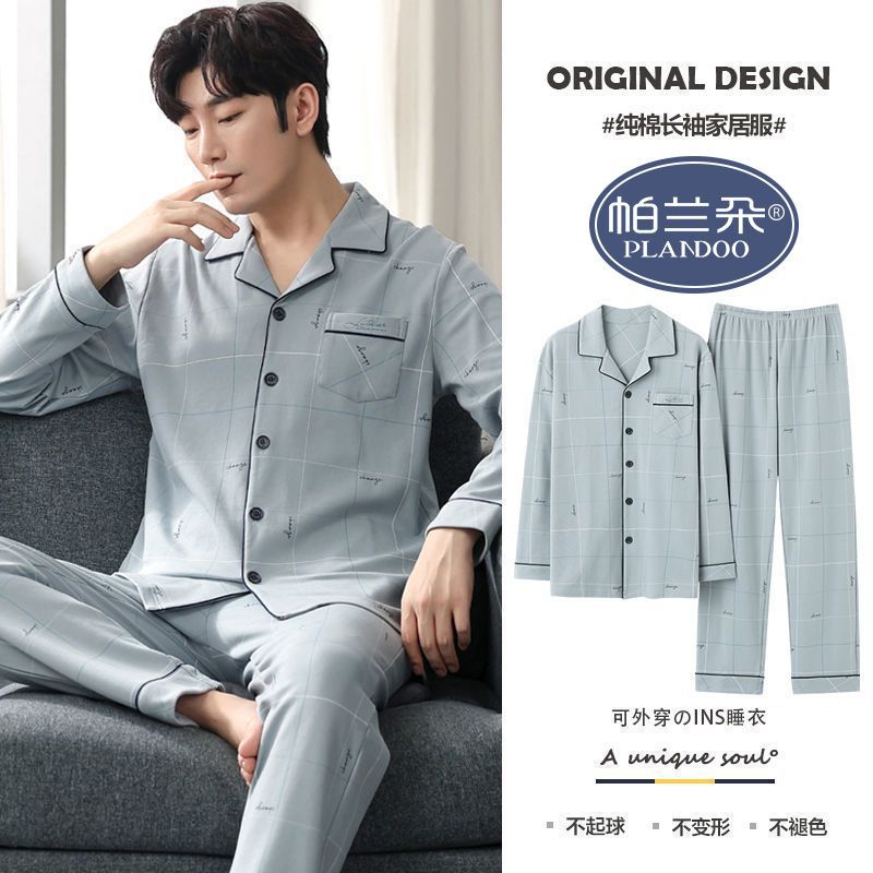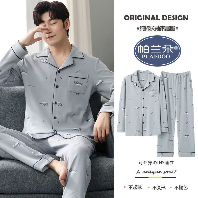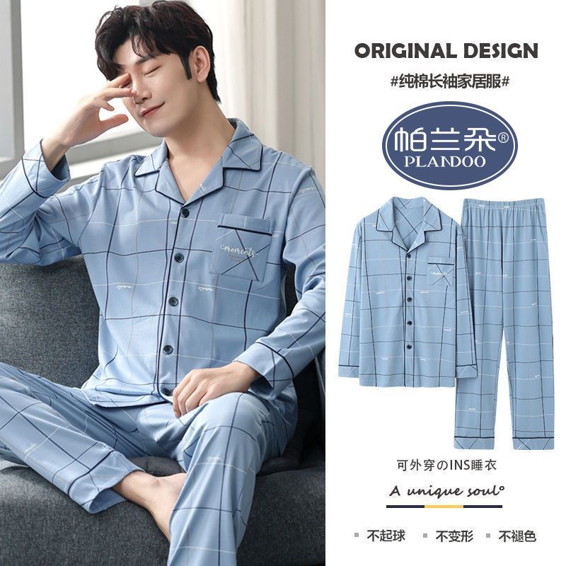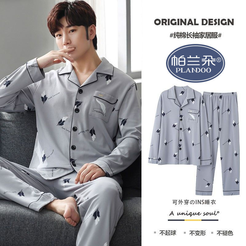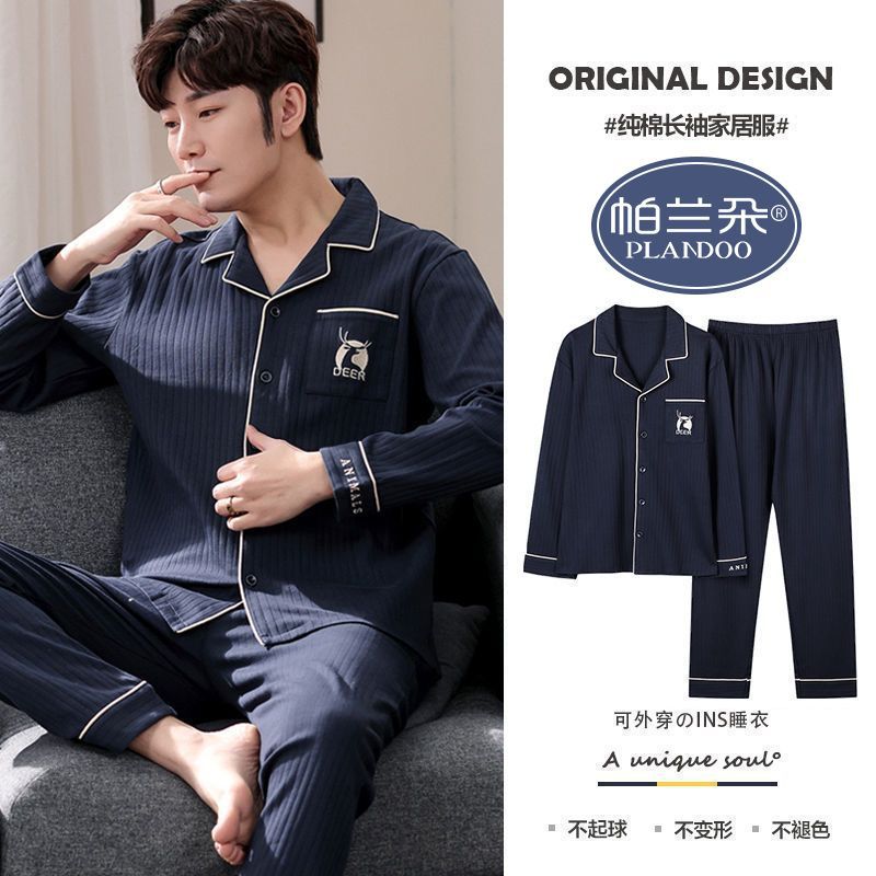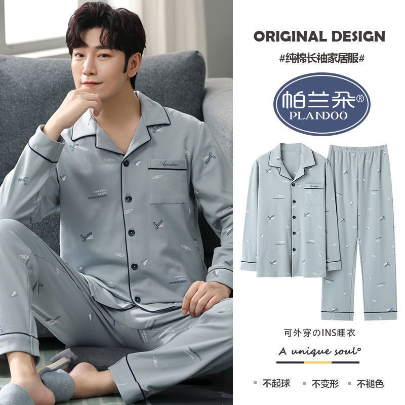 2024 хлопчатобумажная пижама мужская весна и осень новый длинный рукав свободный большой размер