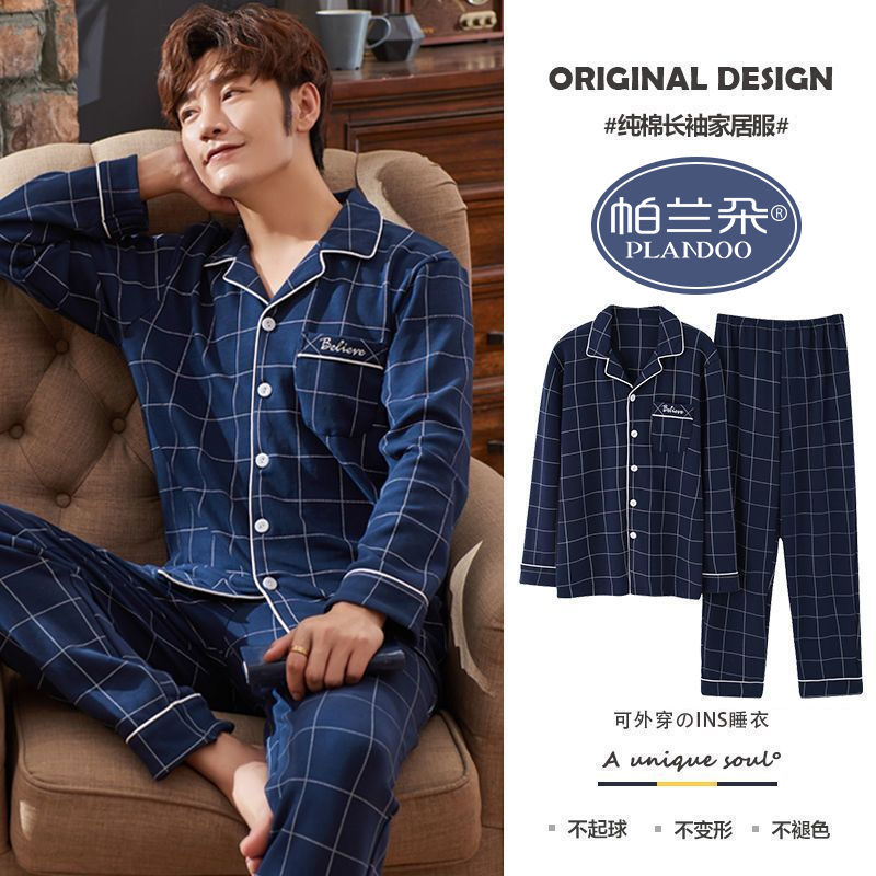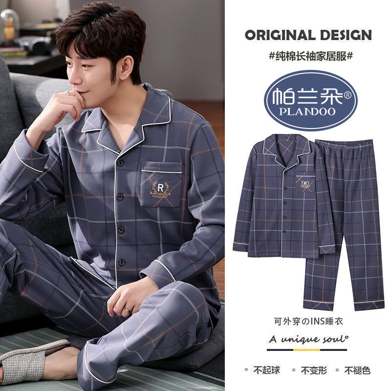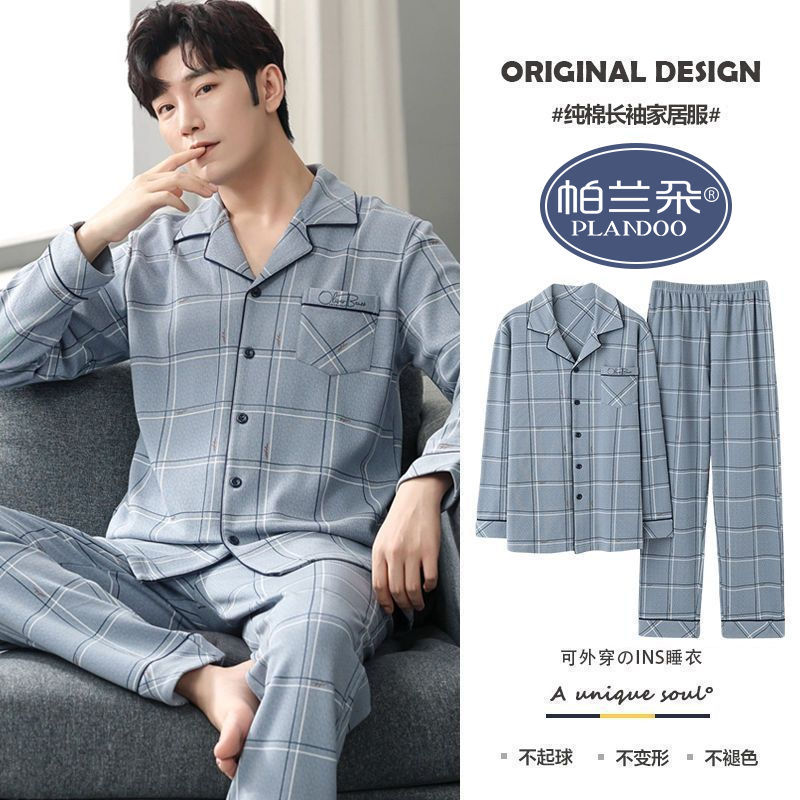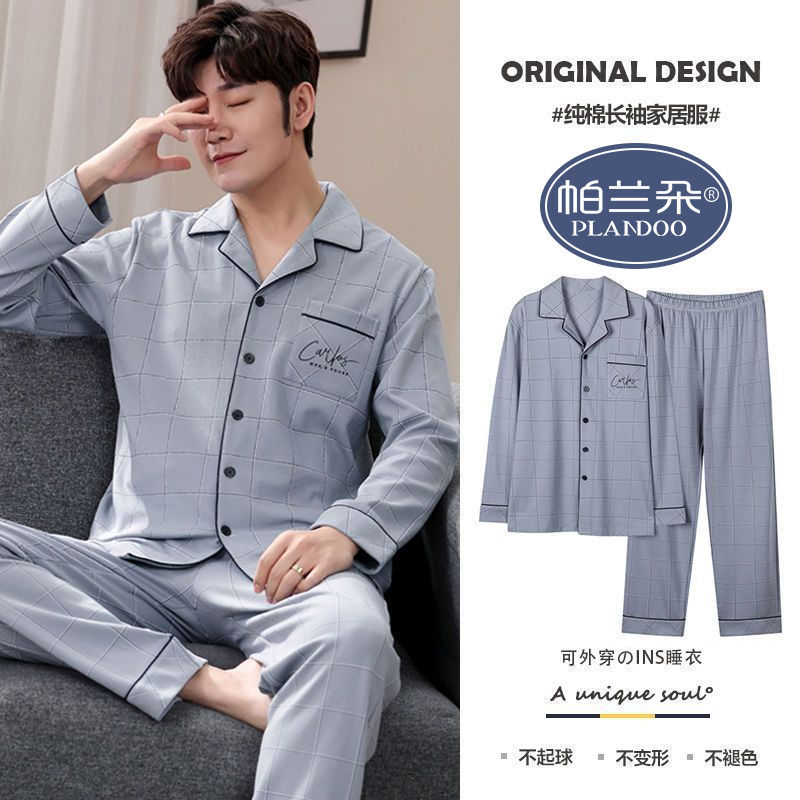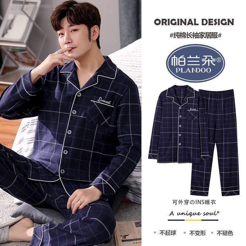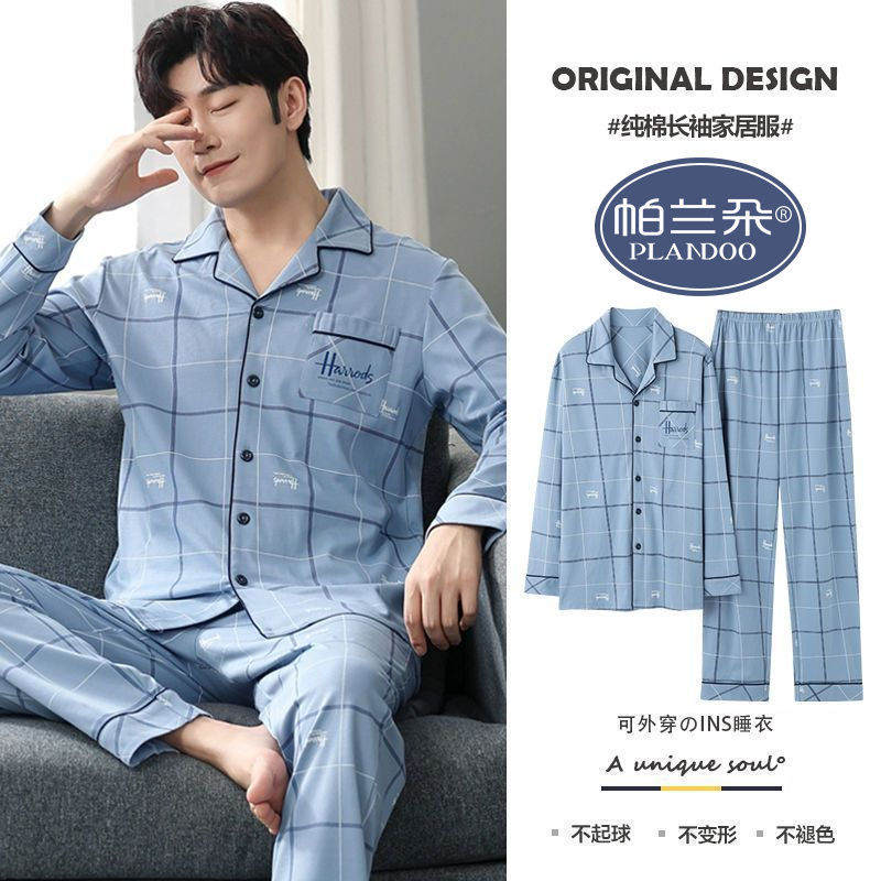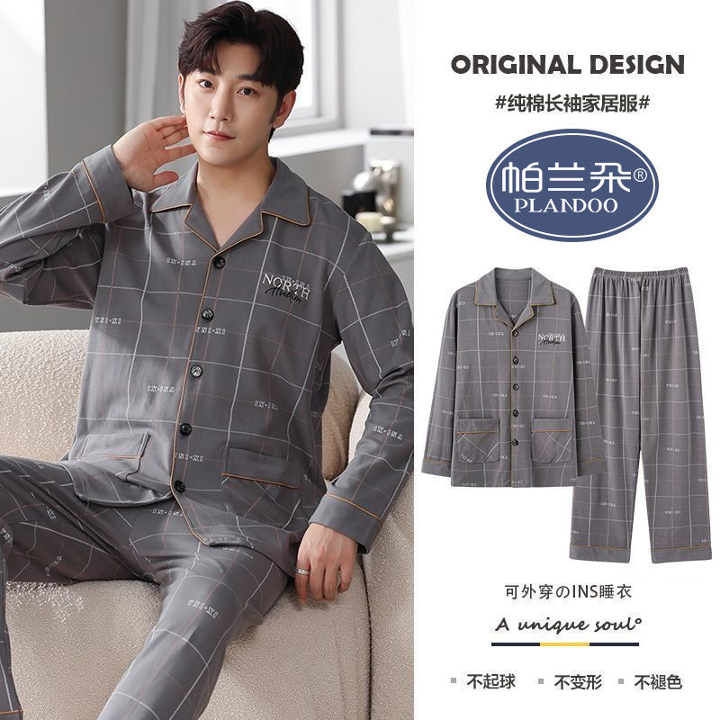 2024 хлопчатобумажная пижама мужская весна и осень новый длинный рукав свободный большой размер