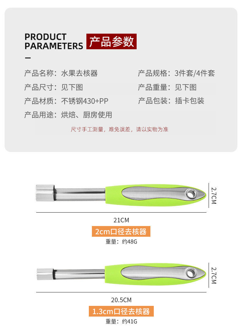 产品名称:不锈钢去核器4件套