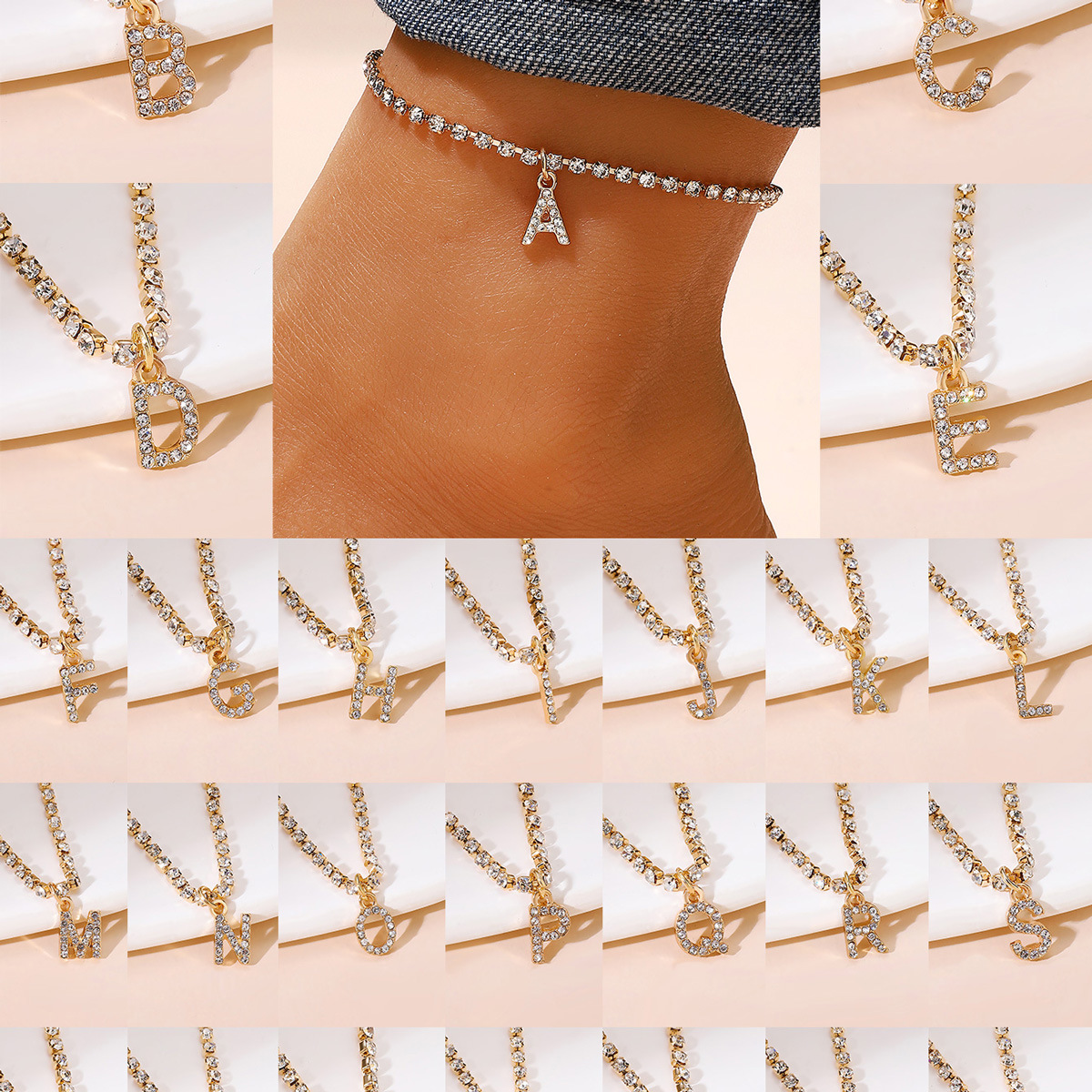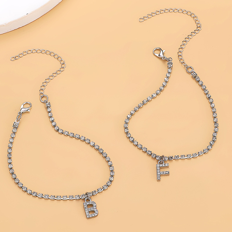 Европейские и американские трансграничные продажи стразы ножные цепи для женщин 26 английских букв с бриллиантами ножные украшения для летнего отдыха пляжные лодыжки